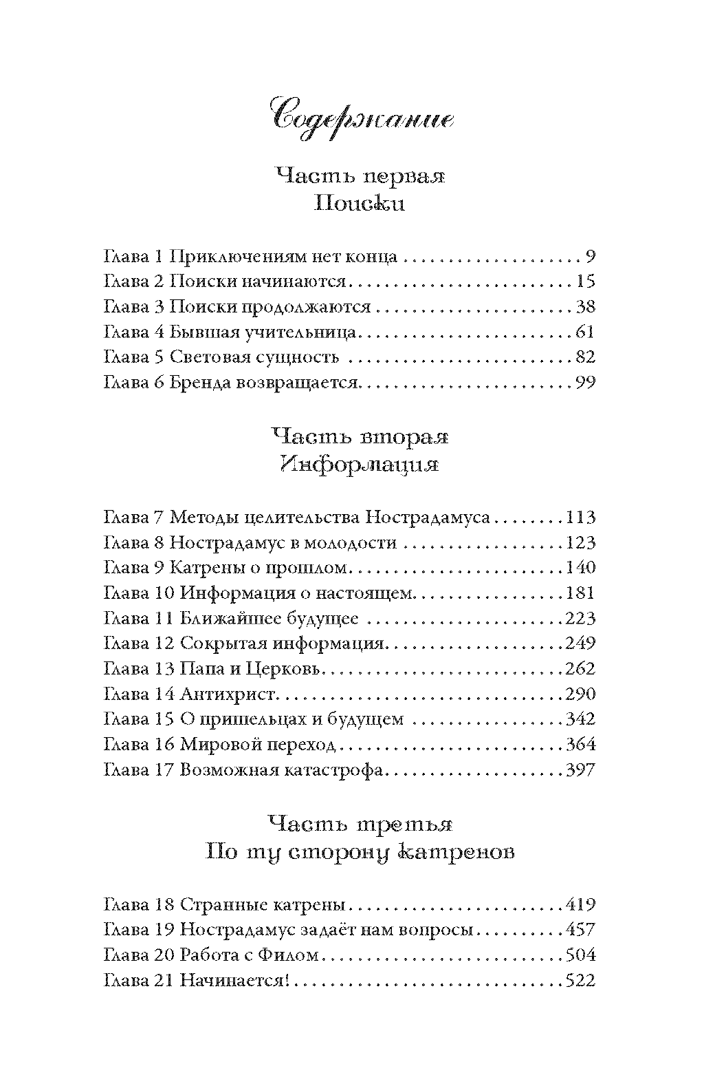 Третья и последняя книга этой серии содержит 132 дополнительных четверостишия, написанных и расшифрованных самим Нострадамусом, а также разоблачение фиктивных четверостиший, ошибочно приписываемых великому прорицателю. Этот том включает: