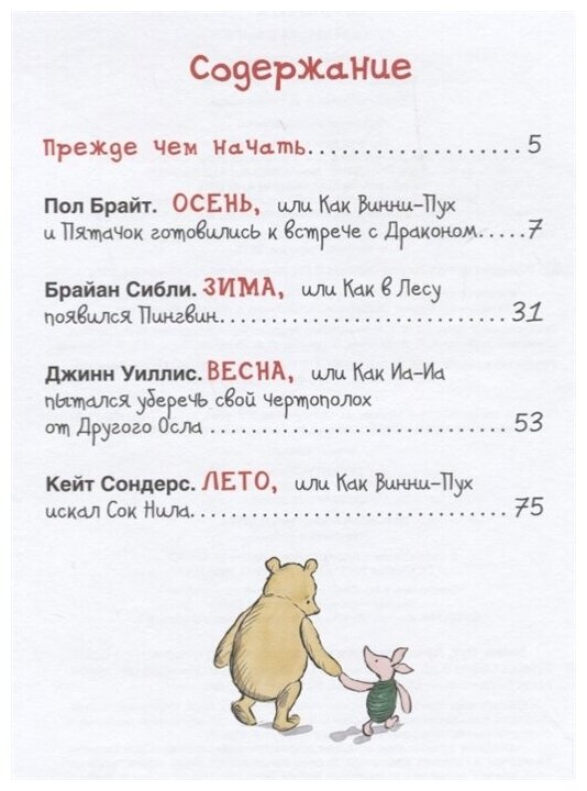 Кто лучший в мире медведь? Конечно, Винни-Пух! Вот бы заглянуть в Зачарованный лес и узнать, чем сейчас занимаются Пух, Кристофер Робин и все-все-все, правда? И вот четыре британских писателя побывали у них в гостях и написали к девяностолетию легендарного плюшевого мишки четыре истории: осеннюю, зимнюю, весеннюю и летнюю! Читателя ждет волнующая, радостная встреча с Пухом и его друзьями – старыми и новыми. Приключения Винни-Пуха, самого знаменитого мишки в мире, продолжаются!