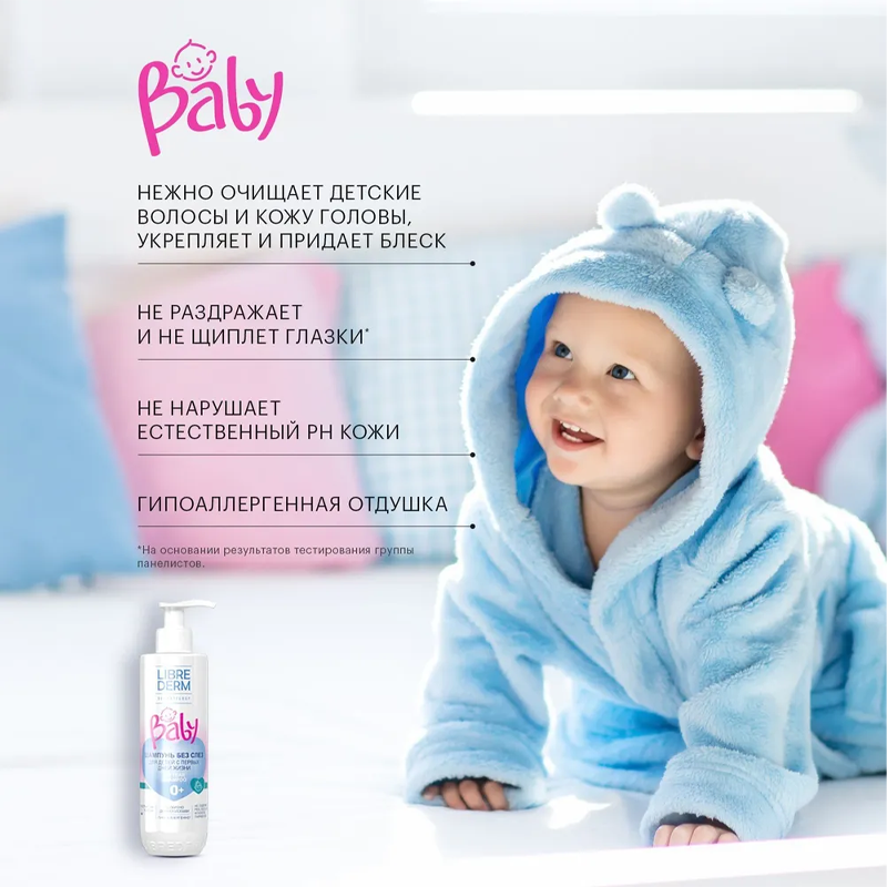 Мягкий гипоаллергенный шампунь бережно очищает нежную кожу малыша, смягчает и увлажняет, не вызывает сухости. Для детей и младенцев с первого дня жизни. Не содержит PEG, SLES, SLS, фталатов, парабенов. Максимально снижен риск возникновения аллергии*. Подходит для чувствительной кожи.