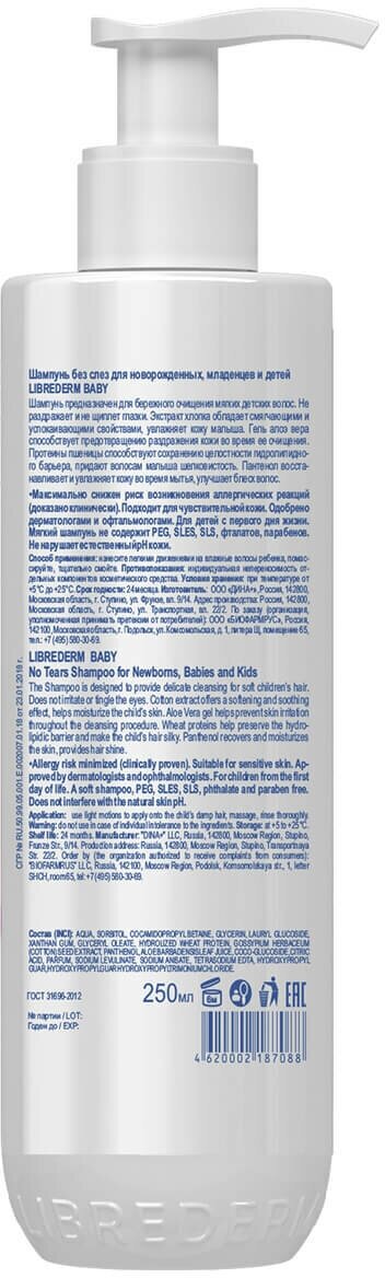 | Способ применения | Нанесите легкими движениями на влажные волосы ребенка, помассируйте, тщательно смойте.Срок годности - 24 месяца. |