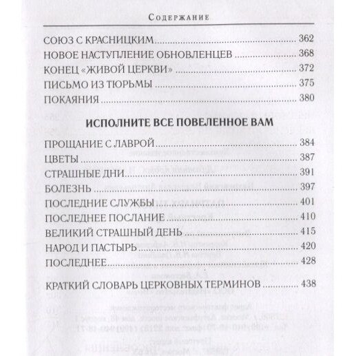 Во второй книге романа показана деятельность Тихона на посту патриарха, а также дана авторская оценка причин его кончины, последовавшей в 1925 году.