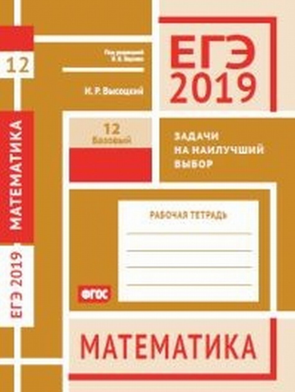 ЕГЭ 2019. Математика. Задачи на наилучший выбор. Задача 12. Базовый уровень. Рабочая тетрадь (И. Р. Высоцкий); МЦНМО, 2019