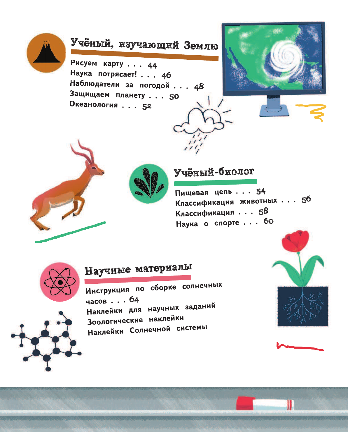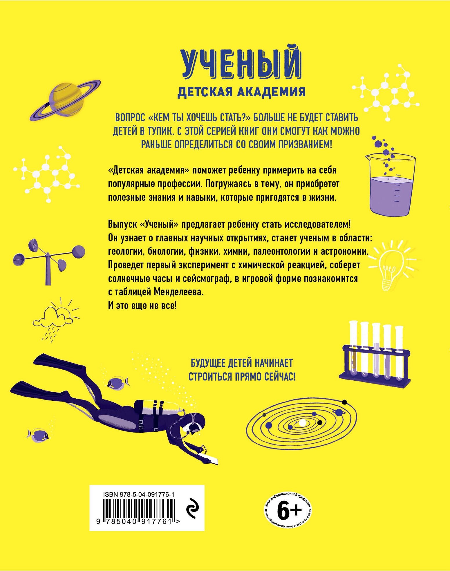 Выпуск «Ученый» предлагает ребенку стать исследователем! Он узнает о главных научных открытиях, станет ученым в области: геологии, биологии, физики, химии, палеонтологии и астрономии. Проведет первый эксперимент с химической реакцией, соберет солнечные часы и сейсмограф, в игровой форме познакомится с таблицей Менделеева.