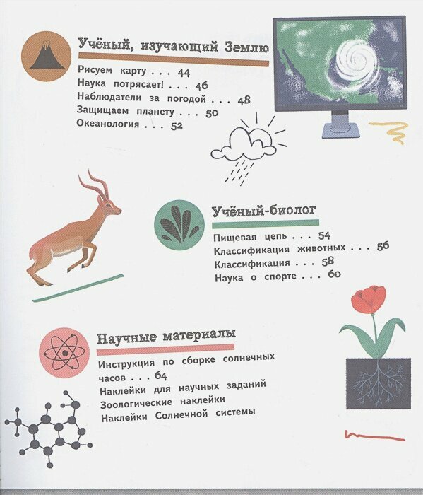 Я собрала всю данную серию, т.к. мне очень нравится формат, подача материала. Считаю, что нужно знакомить ребенка с разными сферами, чтобы он смог понять, что ему нравится. В данной книге есть информация об ученых физические, химические эксперименты, логические и творческие задания. Понемногу охвачены различные естественные науки - география, астрономия, физика, химия, экология, анатомия, зоология. Все это в доступной форме. После каждого выполненного блока ребенок клеит наклейку - награду!