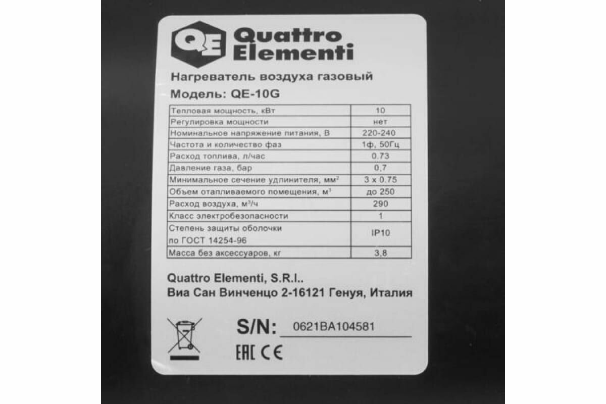 - Тепловая пушка газовая QUATTRO ELEMENTI QE-10G