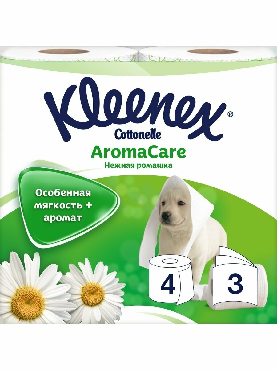 Бумага туалетная Kleenex Нежная ромашка 3-х слойная 4 шт туалетная бумага Aromа Care Нежная Ромашка