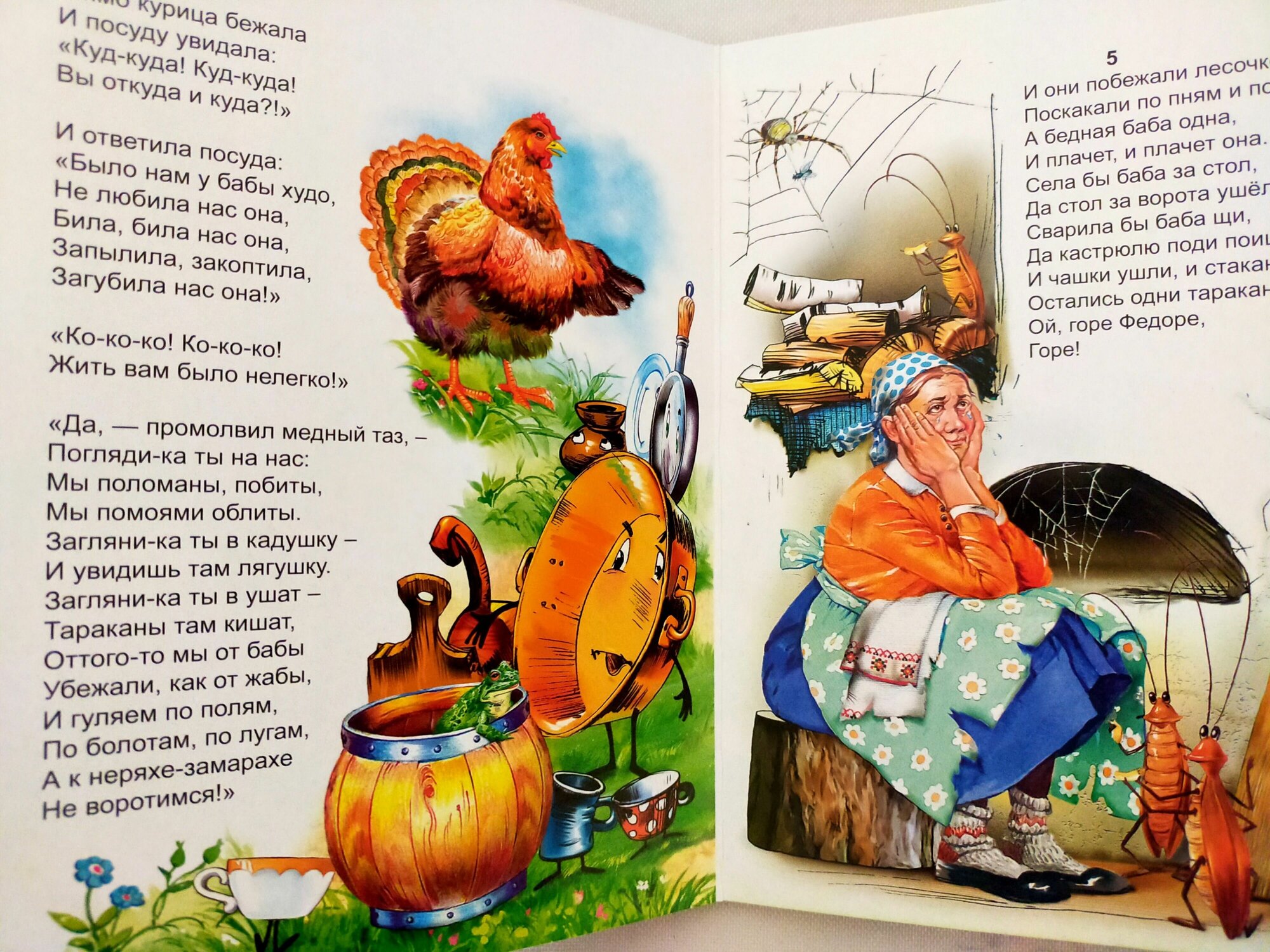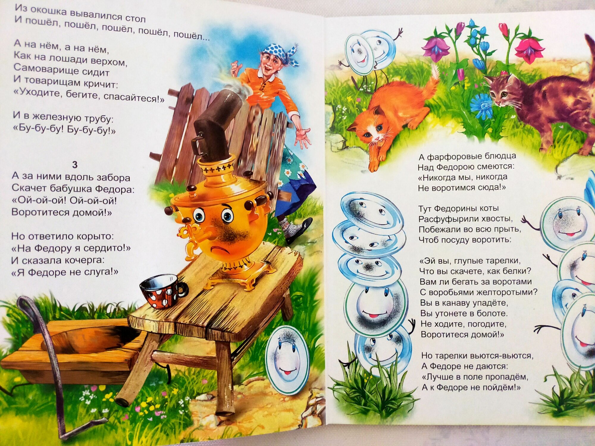 Иллюстрации хорошие, но в некоторых местах на Федору страшно смотреть :) А в целом - замечательная книжка, мы читаем почти каждый вечер, и ребенку все не надоест. Читаем как бы по ролям, и за блюдца и за корыто и за самовар. Слава уже все выучены наизусть, но улыбка все равно не сходит. И качество книжки хорошее. уже сотнираз перелистана, можно сказать до дыр зачиталаи, а книжка как новенькая. К тому же сказка в стишках воспринимается проще.Всем рекомендую.