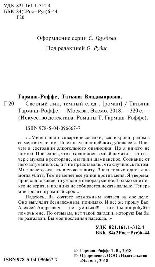 Книга: Светлый лик темный след (Гармаш-Роффе Татьяна Владимировна); Эксмо, 2018