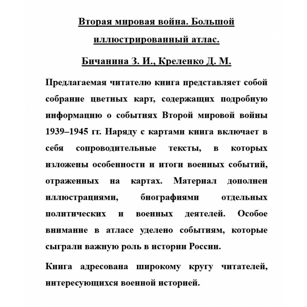 Вторая мировая война. Большой иллюстрированный атлас (Бичанина Зинаида Ивановна, Креленко Денис Михайлович); ООО "Издательство Астрель", 2020