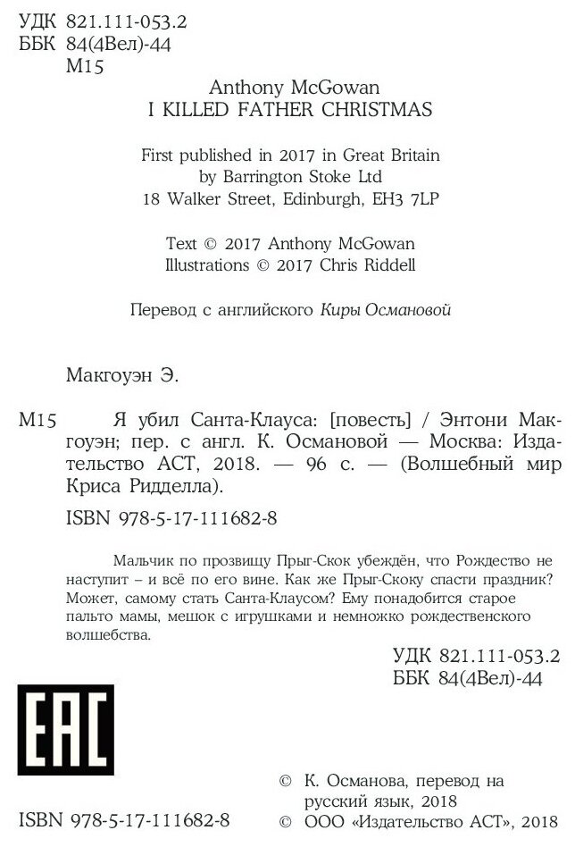 Книга: Я убил Санта-Клауса (Макгоуэн Энтони, Османова Кира (переводчик), Ридделл Крис (иллюстратор)); АСТ, 2018