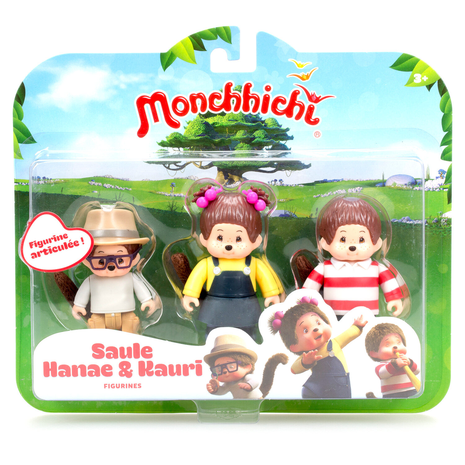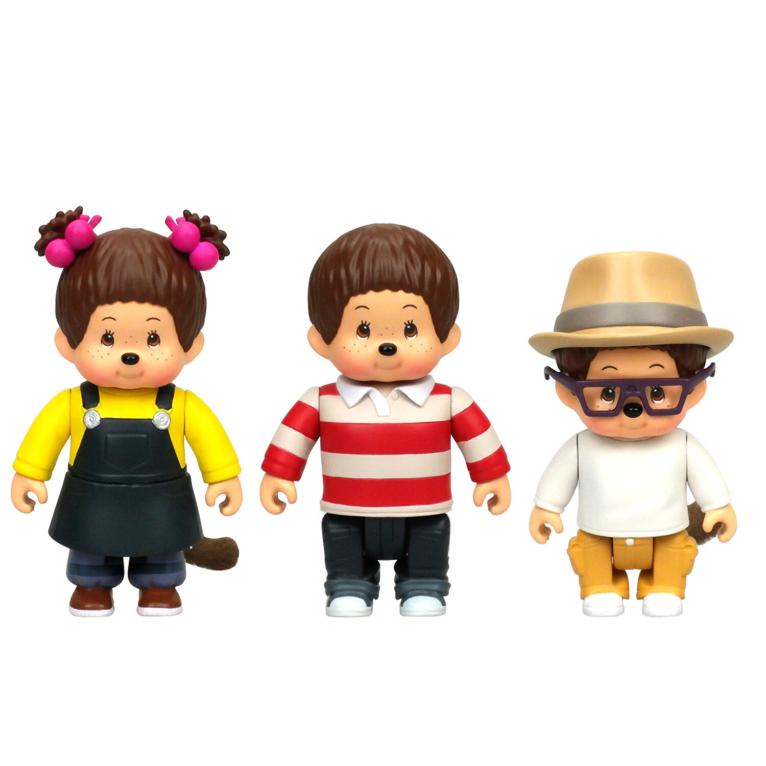 Три коллекционные фигурки персонажей из мультфильма Мончичи. Игрушки с подвижными ручками, ножками и головой. Хвост из мягкого материала.