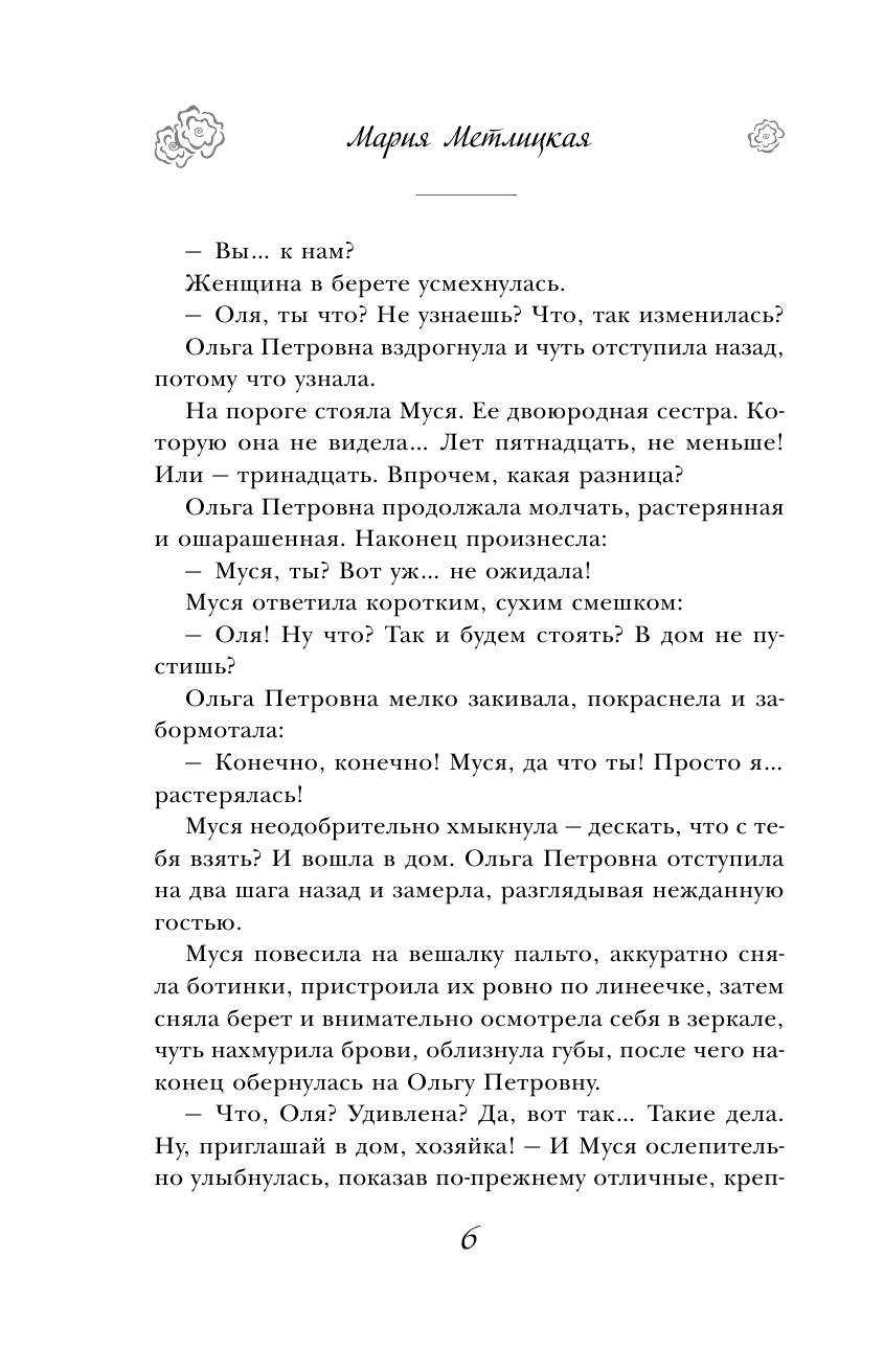 Хороший рассказчик, Мария Метлицкая. Очень хороший. Знаете, у некоторых авторов так бывает, что за деревьями не видно леса. Здесь же, вслед за автором, замечаешь каждую деталь повествования, каждую мелочь, их невозможно не заметить, – и вот уже на ваших глазах они выстраиваются в сюжет. И поскольку речь идет о повседневной жизни, о быте обыкновенных людей, то остается только воздать должное наблюдательности автора, ее мастерству. Писать о том, что кажется простым и знакомым на самом деле очень даже не просто. Вот человек вошел в квартиру… И что дальше? А дальше читатель должен себе представить всю картину. Как панорамное кино. Иначе не поверит.