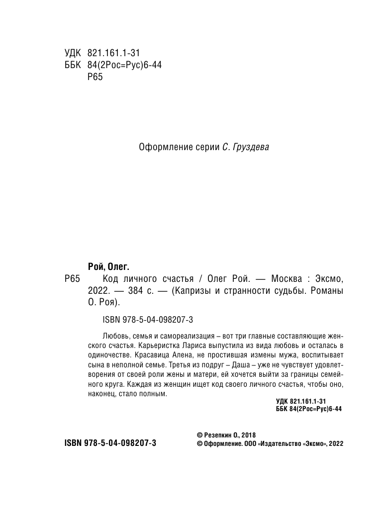 Книга: Код личного счастья (Рой Олег Юрьевич); ООО "Издательство "Эксмо", 2018
