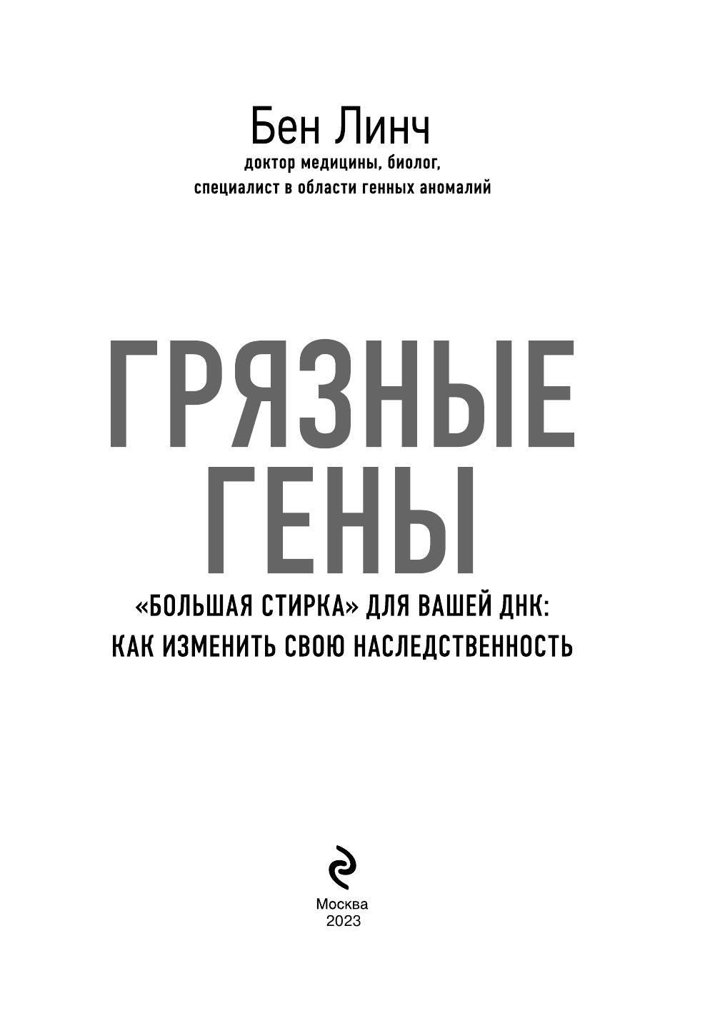 Грязные гены. "Большая стирка" для вашей ДНК: как изменить свою наследственность (Линч Бен, Хахалева Д.В. (переводчик)); Эксмо, 2018