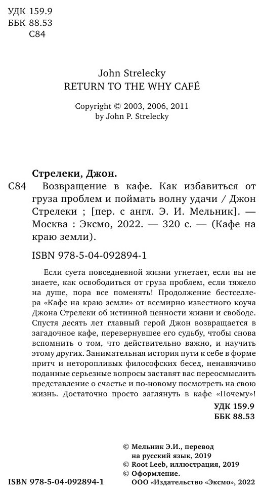 Возвращение в кафе. Как избавиться от груза проблем и поймать волну удачи (Джон П. Стрелеки); Эксмо, 2011