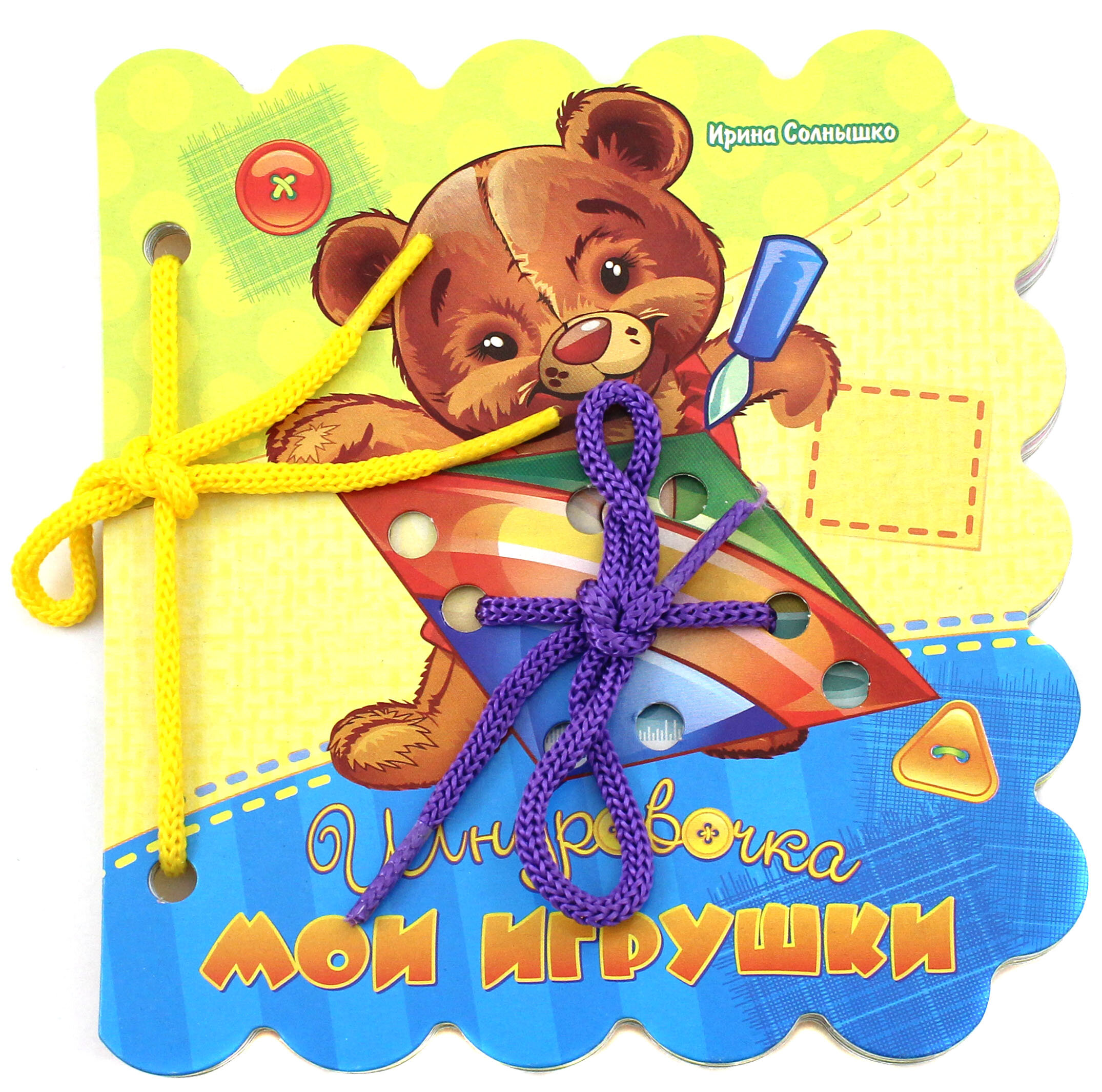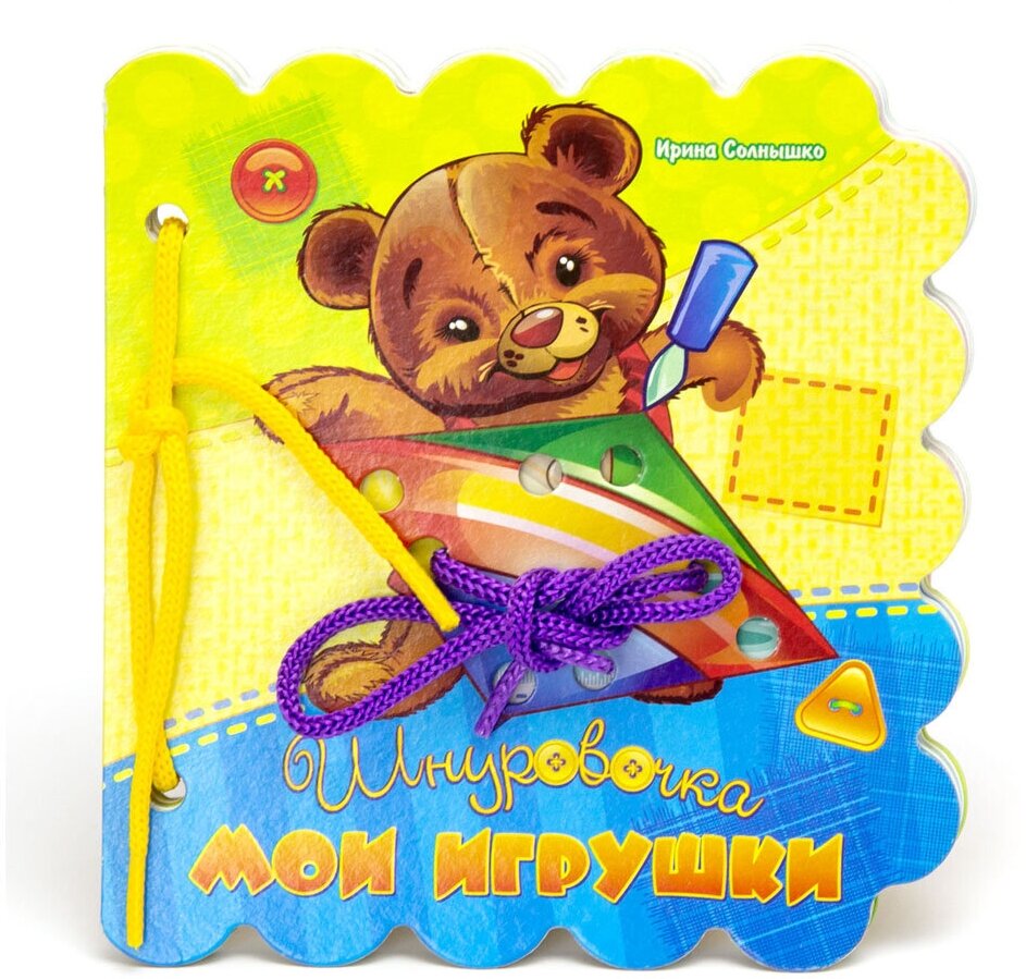 Купила книгу наобум, чтобы изучать с ребёнком его игрушки. Она теперь у сына (1 год)- любимая. Ему нравится, что страницы легко переворачиваются, и он может смотреть её сам. И удобно соотносить картинки с предметами. ( Где пирамидка? А у тебя где пирамидка?) А шнуровками пользоваться будем позже. Так что книга пригодится надолго....