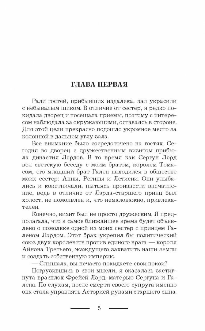 Книга шикарная, захватывает с первых страниц и не отпускает до конца. Персонажи интересные и до конца не ясно кто все же лучше: муж Гарен, грубый и с ветром в голове, но любящий и готовый ради Алис на все, или Арен (Берт) защитник, наставник и надежный человек, но никак не мужчина с которым можно связать жизнь. Главная героиня великолепна, хоть и предстовляет типичную Мэри Сью ( Идеальный персонаж), Это приелось и сложно сказать, настолько ли она шикарна?