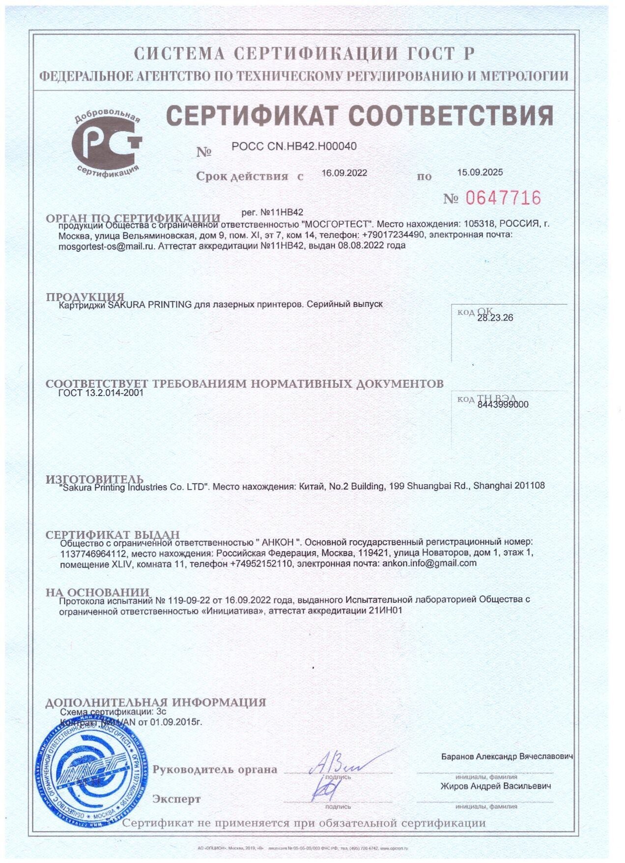 | Картридж №2 | CF542A (№203A) |