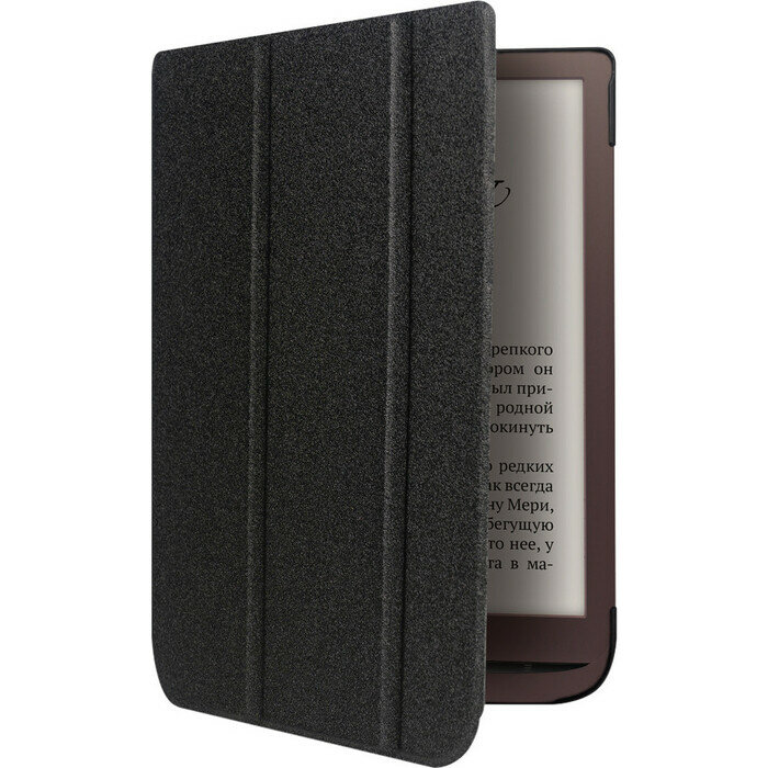 Чехол-книжка для PocketBook 740 (PBC-740-BKST-RU) с покрытием Soft-Touch. Чехол легко превращается в подставку, обеспечивая оптимальные условия для чтения книг под комфортным для этого углом. Кейс-бампер имеет покрытие Soft-Touch и обеспечивает приятные тактильные ощущения, кажется, что чехол-книжка слегка бархатистый и очень мягкий. Этот чехол надёжно защитит Ваш ридер и придаст ему изысканный внешний вид. Ридер прочно фиксируется внутри пластикового кейса-бампера, который до мельчайших подробностей учитывает конструкцию устройства. Обложка поддерживает интеллектуальную «функцию сна», благодаря чему позволят существенно экономить заряд батареи. Закрытая обложка, автоматически и почти мгновенно вводит устройство в спящий режим, а при открытии – ридер снова активизируется.