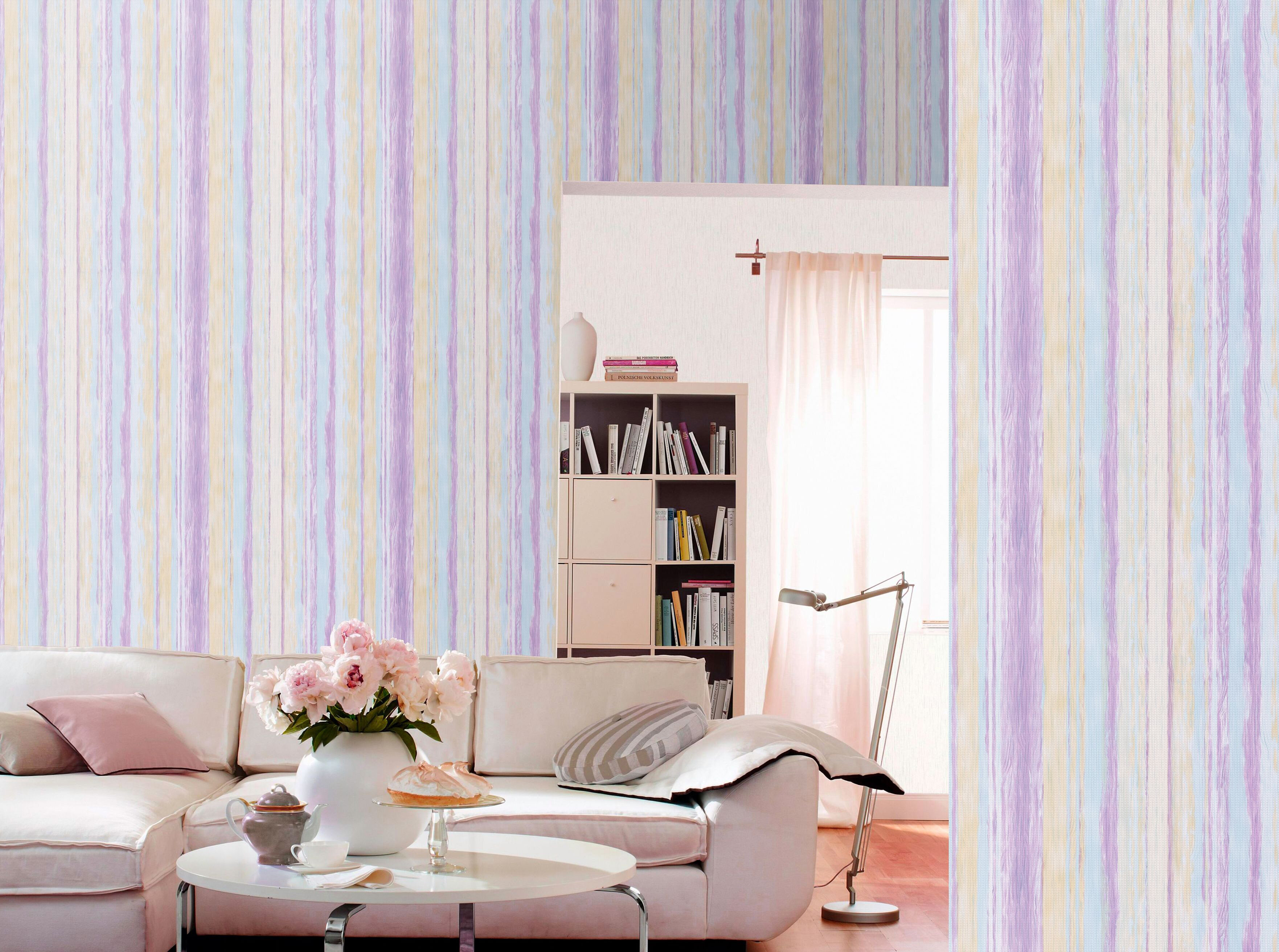 Бумажные обои Саратов из коллекции Аскона-Л станет отличным выбором для оформления стен в различных помещениях. Они будут гармонично выглядеть в любых интерьерах. Легкий изящный узор в виде вертикально расположенных полос визуально увеличит высоту стен в помещении, сделает его еще более просторным и воздушным. Сочетание цветов из пастельной цветовой гаммы с преобладанием лилового оттенка будет хорошо смотреться на фоне других цветов, которые используются в дизайне помещений.