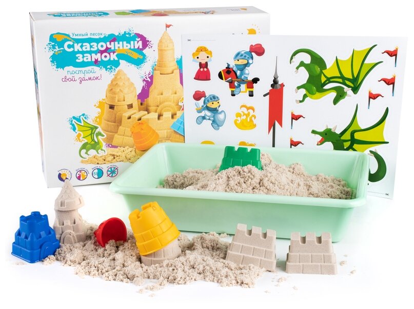 Представляем вам Умный песок. Он на 98% состоит из чистейшего кварцевого песка и на 2% из абсолютно безвредного полимера, благодаря которому песок приобретает поистине уникальные свойства — напоминает влажный морской песок. Умный песок прекрасно подойдет для развития творческих способностей, воображения и фантазии, он помогает развить моторику. Игра с умным песком поможет снять напряжение. Набор Сказочный замок предназначен для юных строителей, которые любят сооружать здания. Вооружившись необходимым инструментарием можно создать восхитительное архитектурное творение в виде замка с башенками, воротами и окошками!