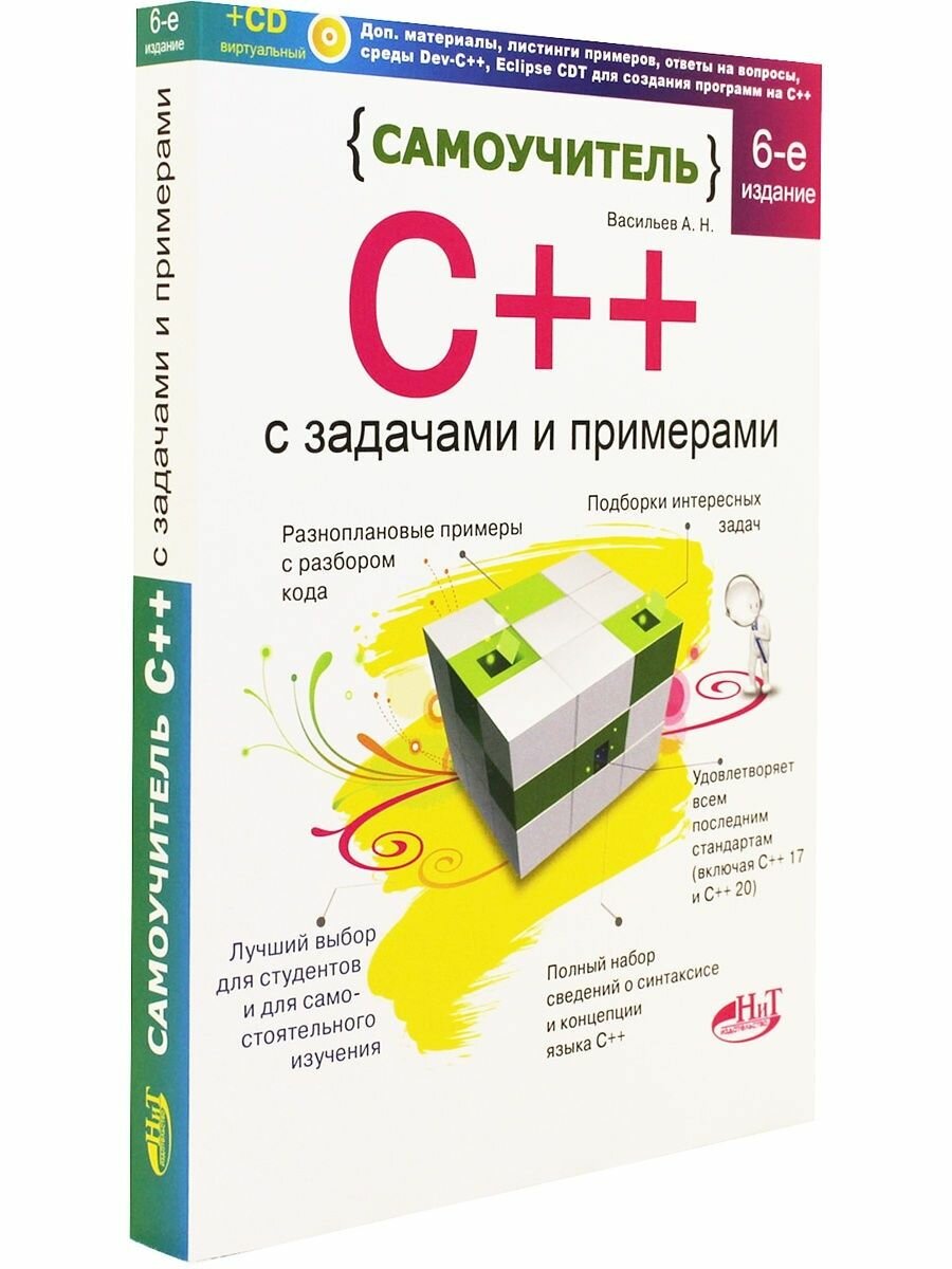 Данная книга является шестым изданием превосходного и эффективного учебного пособия, предназначенного для изучения языка программирования С++ с нуля и удовлетворяющего самым последним стандартам (С++ 17 и С++ 20). Книга задумывалась, с одной стороны, как пособие для тех, кто самостоятельно изучает язык программирования С++, а с другой, она может восприниматься как лекционный курс с проведением практических занятий. Книга содержит полный набор сведений о синтаксисе и концепции языка С++, необходимый для успешного анализа и составления эффективных программных кодов. Материал книги излагается последовательно и сопровождается большим количеством наглядных примеров, разноплановых практических задач и детальным разбором их решений. К каждому разделу прилагается обширный список задач для самостоятельного решения, а также контрольные вопросы (ответы на которые размещены на виртуальный СD).