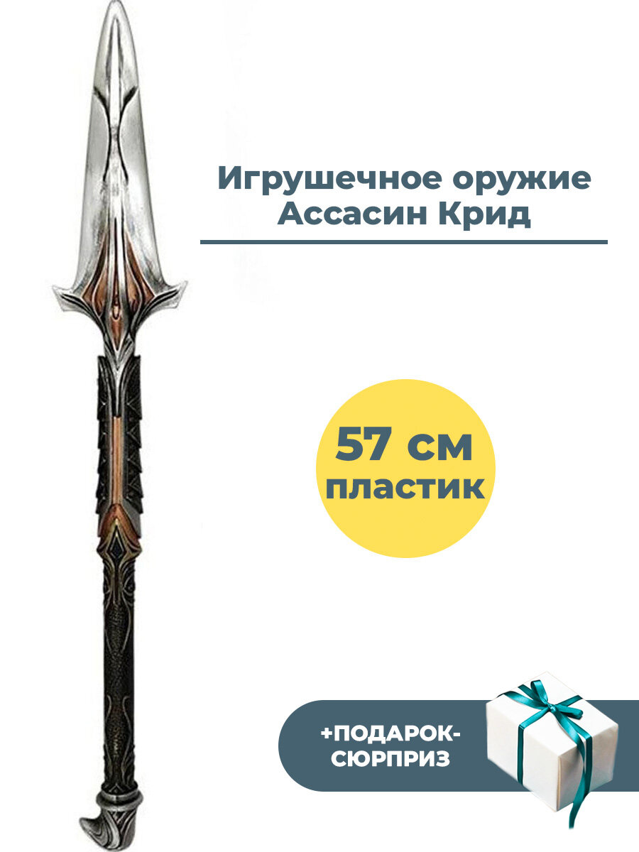 Игрушечное оружие в виде копья Леонида по мотивам компьютерной игры Ассасин Крид (Assassin's Creed). Копье Леонида - мощный артефакт, используемый в Assassin's Creed: Odyssey (прим. StarFriend). Копье отличается высокой степенью детализации, представляет собой пластиковый аксессуар и безопасно в использовании. Изделие сборное, состоит из двух частей. Общая длина копья - 57 см. Модель без звуковых и световых эффектов, упакована в тематическую картонную коробку. Копье Леонида станет прекрасным подарком для фанатов игры Ассасин Крид и косплееров.