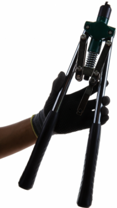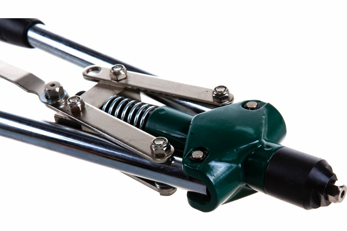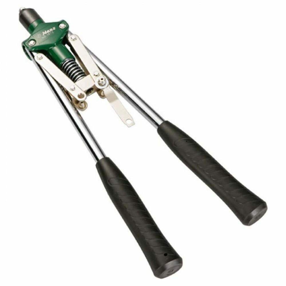 Промышленный заклепочник Hans - это прочный и надежный ручной инструмент, с помощью которого удобно скреплять листовые материалы. Изделие работает совместно с вытяжными заклепками размерами 3.2, 4.0, 4.8, 6.4 мм. Заклепочник рычажного типа снижает усилие при проведении работ. Инструмент обладает двумя удобными рукоятками.