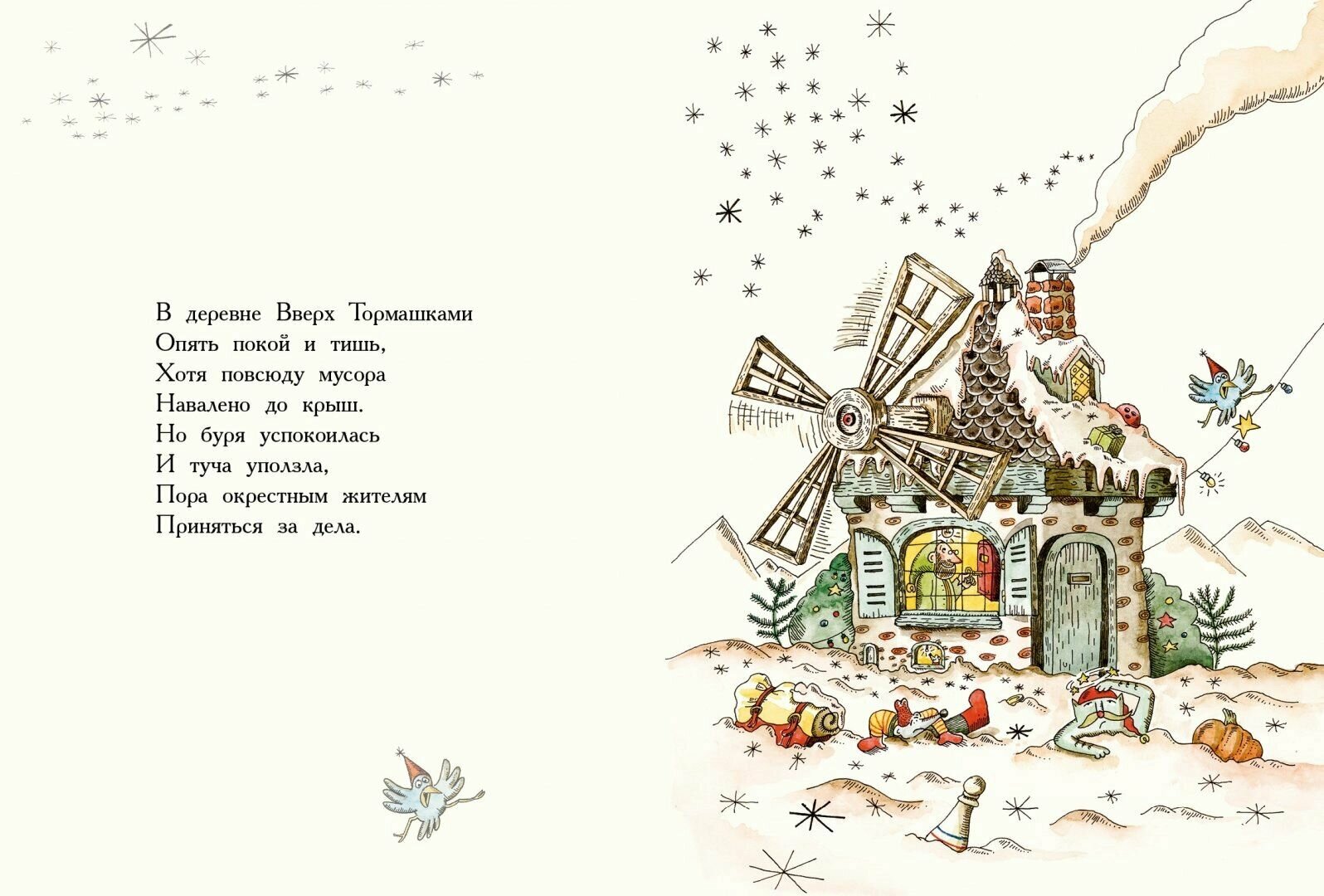 В деревне Вверх Тормашками всё снова, как всегда: её обитатели бегают, снуют, суетятся, чинят что-то, подвязывают, склеивают… Скука - незнакомое им слово! Но только они всё наладят, вдруг снова поднимается метель, деревенька переворачивается вверх дном, и жителям ничего не остаётся, как начать всё заново. В чём же дело?..