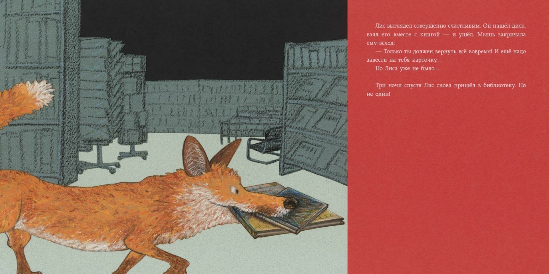 Хорошая яркая добрая книга про лиса, который погнался за мышкой, а попал в библиотеку. Она, конечно, немного неожиданная – но веселая и интересная. Жалко, что такая короткая – это, пожалуй, единственный недостаток.
