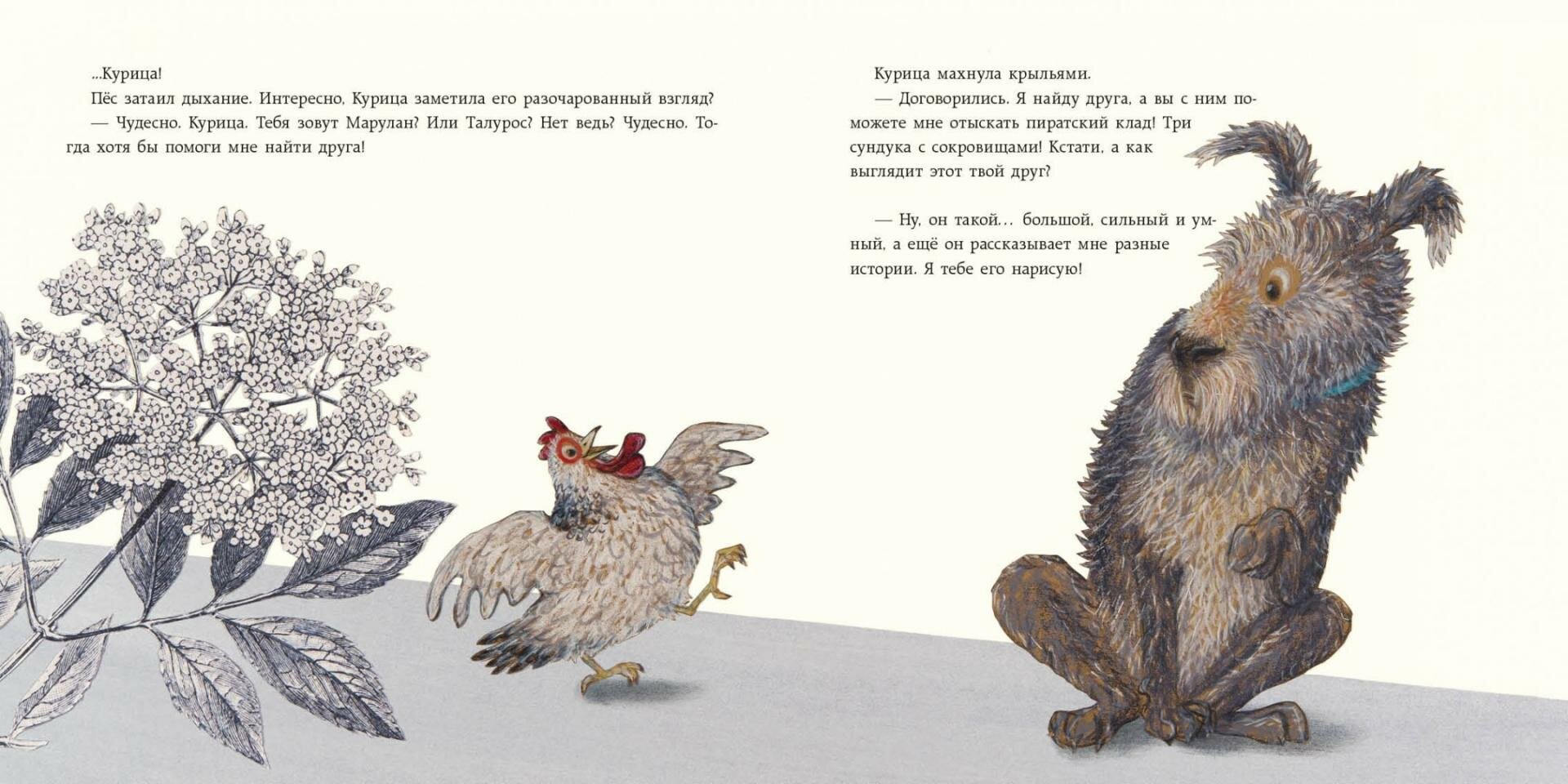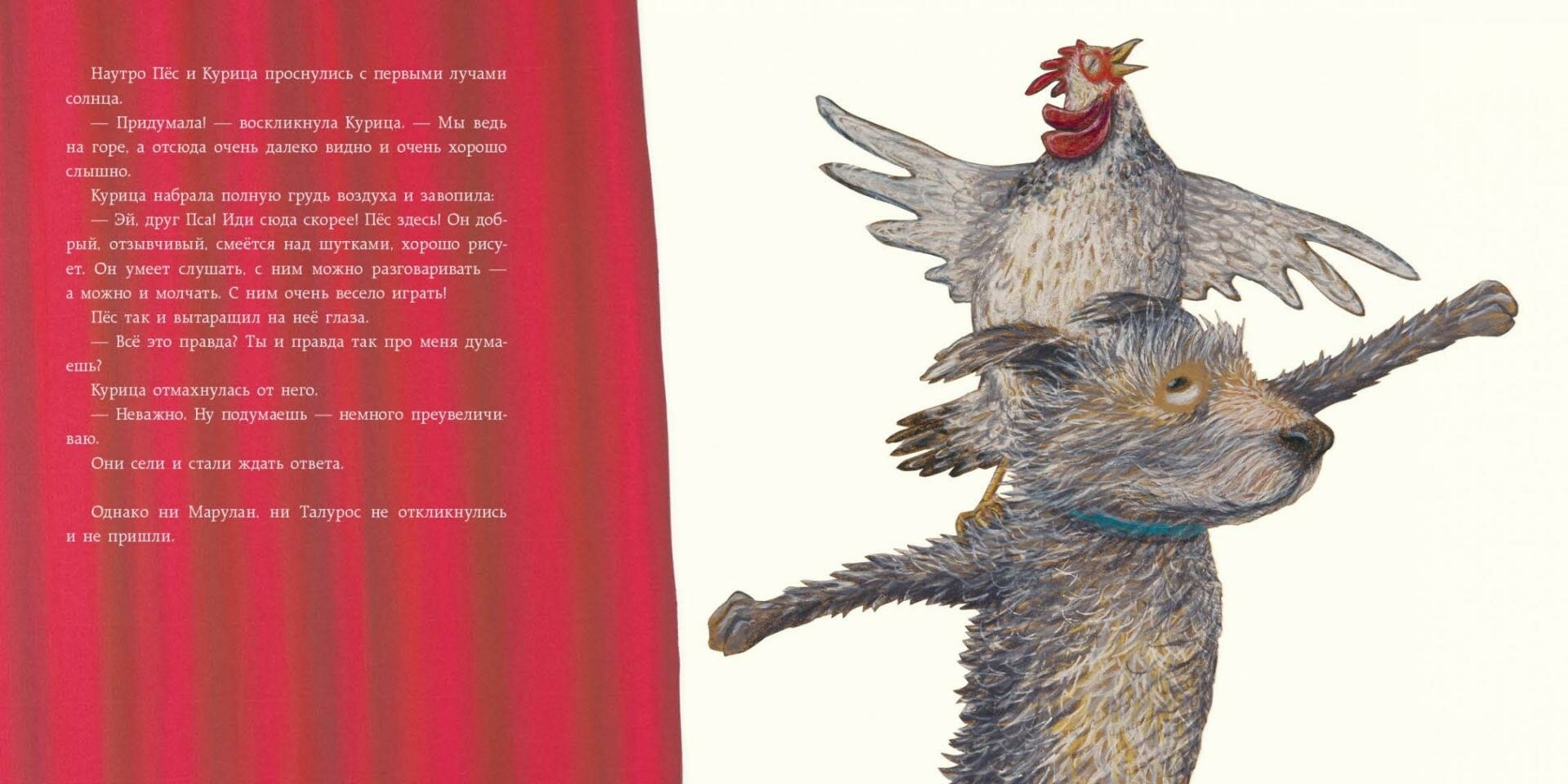 У Пса и Курицы очень живые лица - нет в этом никакой ошибки, слово “морды” к ним просто не подходят. Рисунки очень живые и эмоциональные, они не вырви-глаз яркие, но при этом создают какой-то очень верный фон для такой живой и веселой сказки.