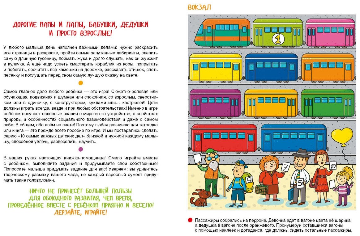 Самое главное дело любого ребёнка - это игра! Сюжетно-ролевая или обучающая, подвижная и шумная или спокойная, со взрослым, сверстником или в одиночку, с конструктором, куклами или... кастрюлей! Дети должны играть всегда, везде и при любых обстоятельствах! Именно в игре ребёнок получает основные знания о мире и его устройстве, о свойствах природы и особенностях социального взаимодействия и даже о самом себе. В общем, обо всём на свете! Поэтому любая развивающая тетрадка или книга - это прежде всего пособие по игре. И мы постарались сделать серию "10 самых важных детских дел" близкой и нужной каждому малышу, способной увлечь, развеселить, научить.