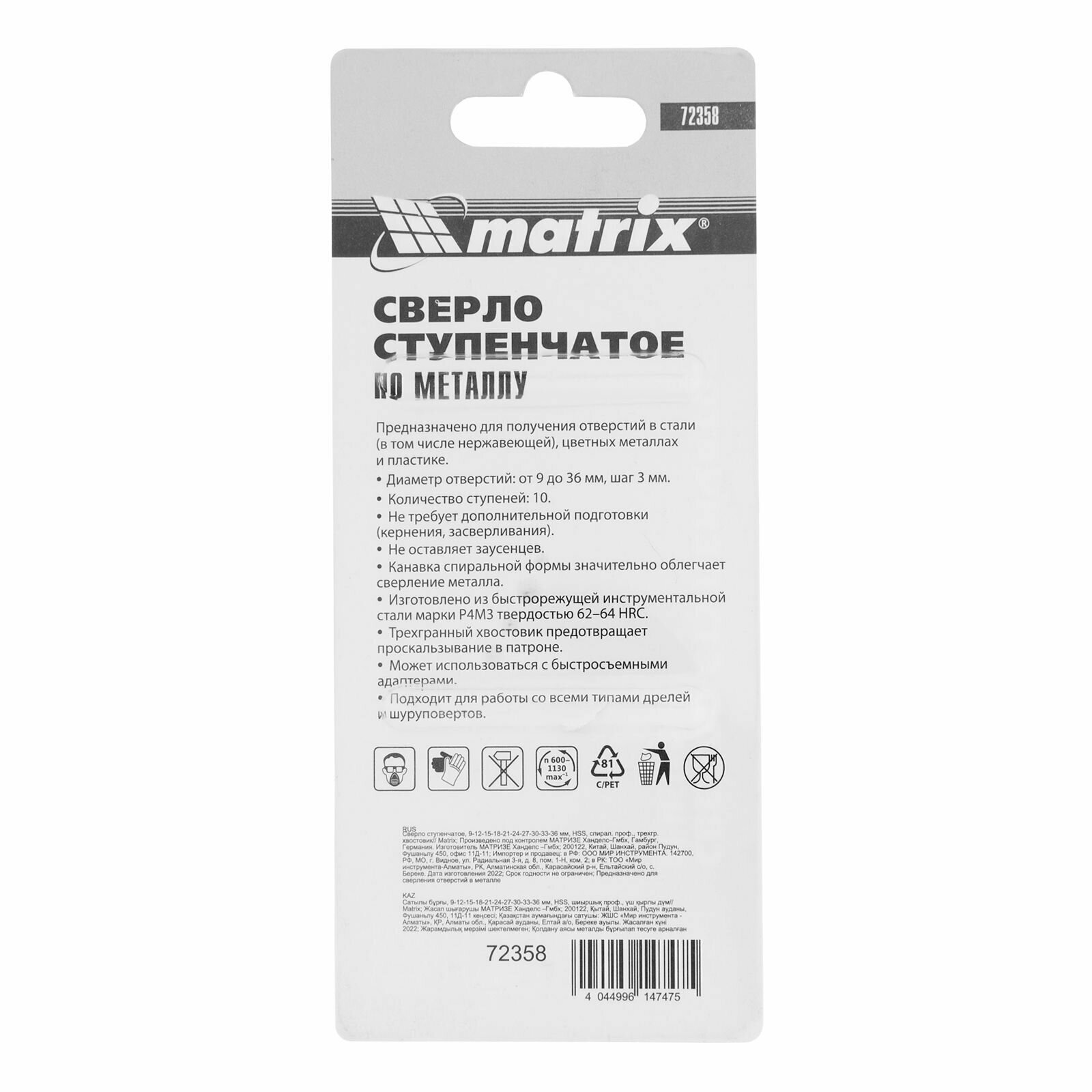 Ступенчатое сверло MATRIX 72358