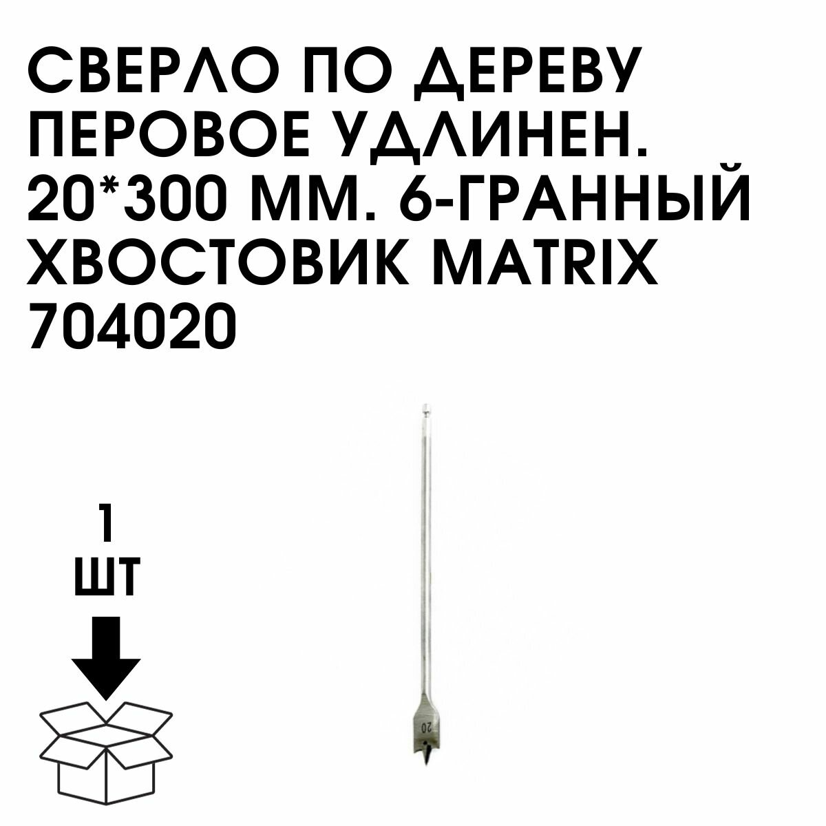 Сверло по дереву перовое удлиненное, 20 х 300 мм, 6-гранный хвостовик// Matrix