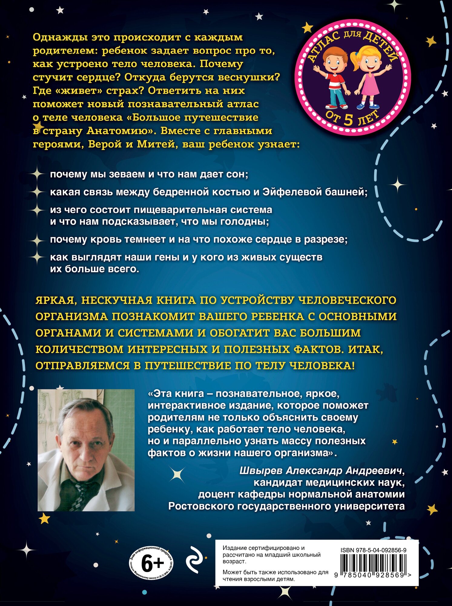 Перед вами интерактивный атлас по анатомии человека, который поможет познакомиться с устройством организма, изучить основные системы и функции легко и с юмором. Главные герои, Вера и Митя, вместе с юными читателями совершат настоящее путешествие внутрь человеческого тела. Помимо научных знаний, в атласе представлены различные вопросы и задания, которые помогут детям лучше понять и усвоить материал.