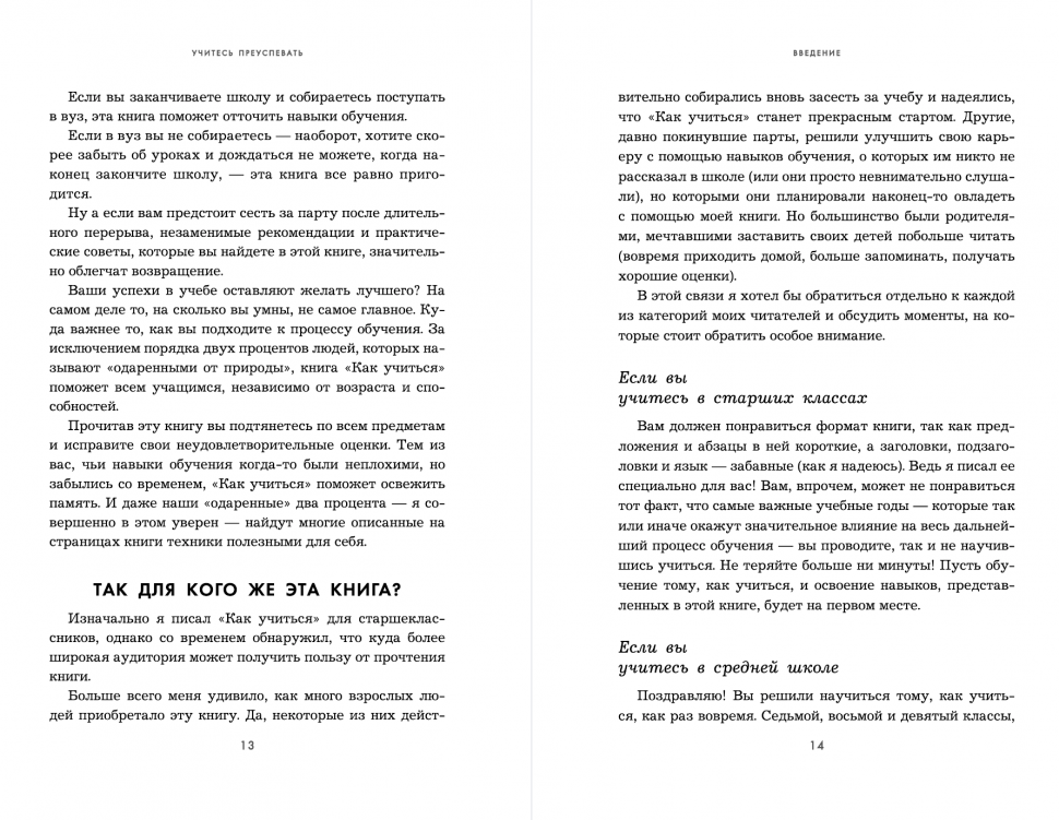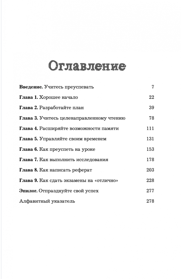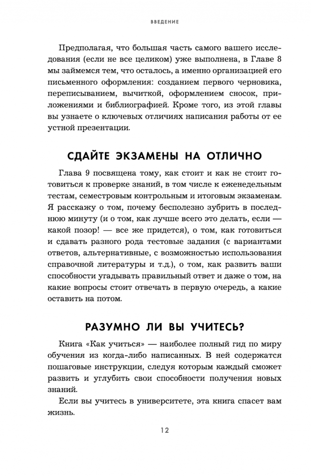С помощью этого руководства вы научитесь эффективно работать с книгами, учебниками, искать информацию в библиотеке и Интернете, продуктивно готовиться к контрольным, тестам и экзаменам, и организовывать свое время так чтобы добиваться хороших результатов. .Книга, ставшая бестселлером на Западе, позволит всем, кто не хочет останавливаться на достигнутых знаниях и продолжает свое образование усовершенствовать свои навыки обучения. А именно: умение концентрироваться, грамотно пользоваться библиотекой, не тратить лишнее время в Интернете, а плодотворно искать информацию, создавать рабочую атмосферу и мн. другое, что поможет вам эффективно использовать ресурсы для получения знаний.