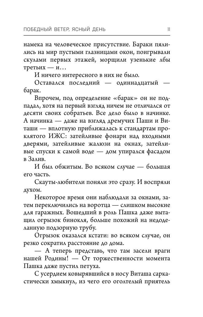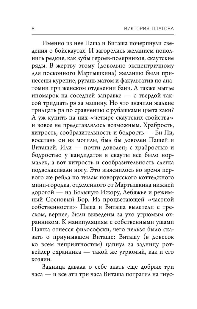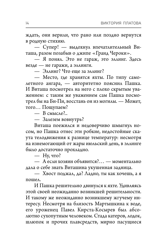 Первое, на что стоит обратить внимание, это живой, образный язык повествования. Юмористический монолог автора меня сбивал с толку по ходу всего чтения. Зато персонажи, благодаря такой картинке, получились яркими, эмоциональными и цельнообразными. Под конец даже понравилось настолько, что сюжет как таковой отошел на второй план. С героями мы знакомимся в прибрежном поселке недалеко от Санкт-Петербурга. Два местных подростка обнаруживают в эллинге труп неизвестного. Расследование ведет родная милиция, причем действие плавно перемещается в северную столицу. Читатель познакомится с нравами как в глубинке, где не все пьющие, так и в балетной сфере. На один раз, конечно, но затягивает. Кстати, само издание постепенно разваливалось у меня в руках - склейка переплета оставляет желать лучшего.