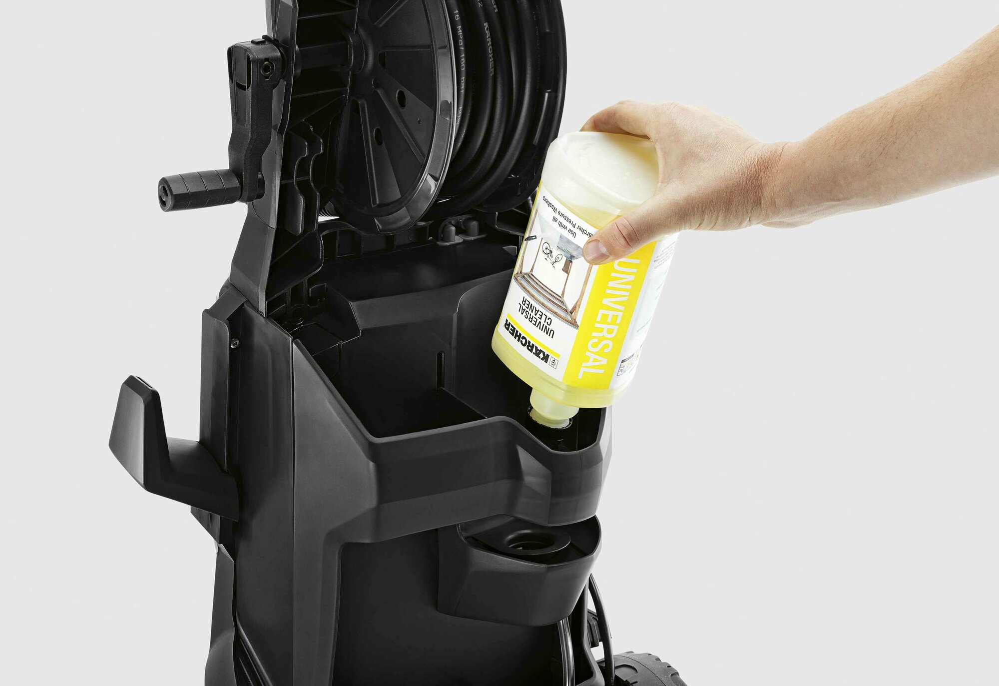 | Способ применения | В зависимости от типа устройства соединить бутылку с аппаратом высокого давления, вставить всасывающий шланг в бутылку или же залить моющее средство в резервуар. Если возможно, установить дозировку. Нанести при низком давлении, дать немного подействовать, после чего тщательно смыть водой под высоким давлением. Для оптимальной защиты и ухода после чистки еще раз нанести средство |