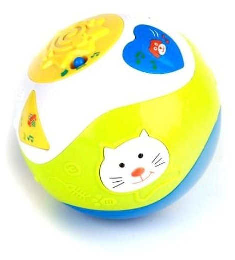 Обучающая игрушка «Обучающий шарик». Со световыми и звуковыми эффектами на русском языке: названия животных, стихи, песни. Без механизмов. С питанием от батареек. Батарейки: 2*АА (не входят в комлпект). Основной конструкционный материал: пластмасса. Предназначено для детей старше 3-х лет.