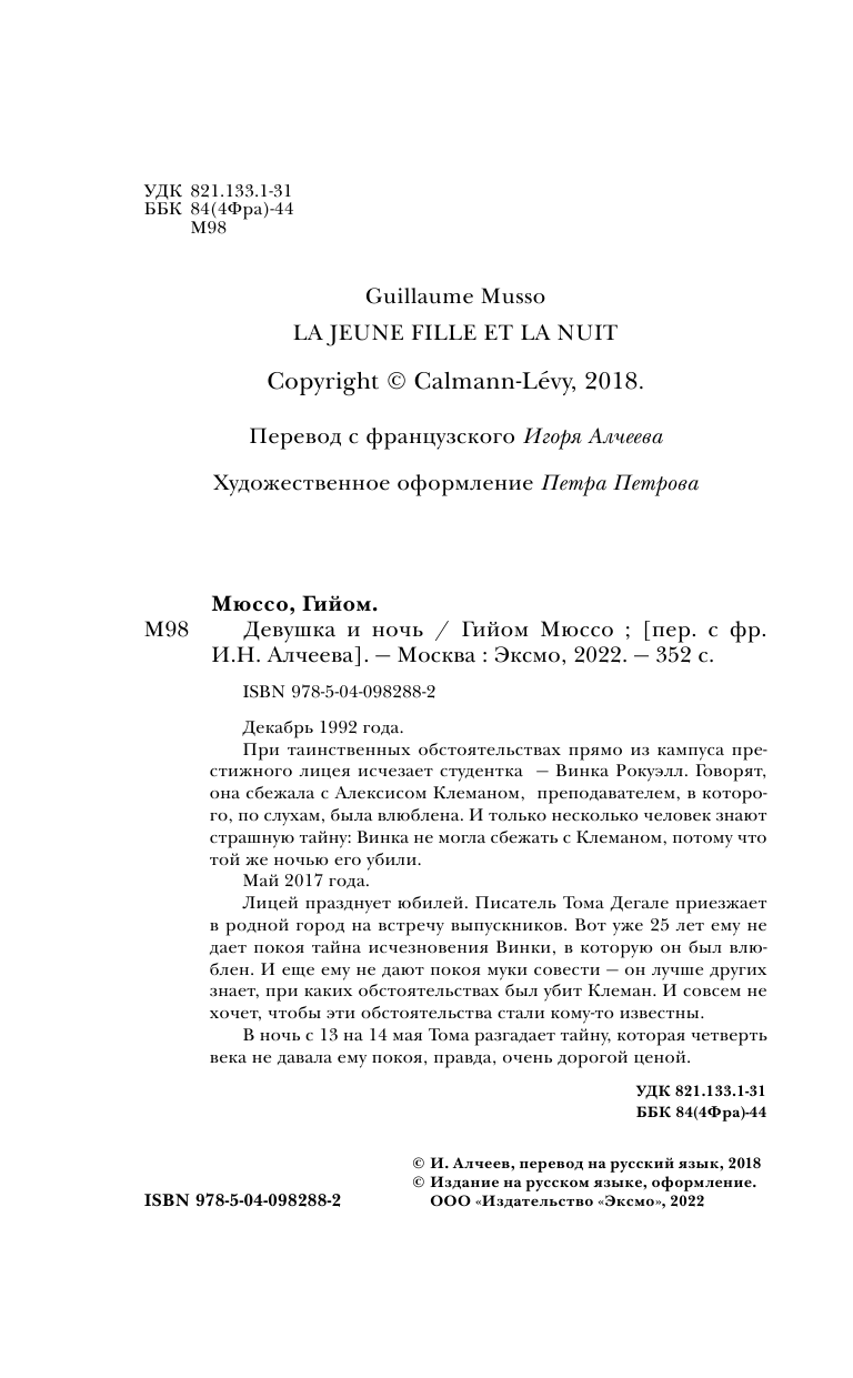 | Автор(ы) | Мюссо Гийом , Алчеев Игорь Николаевич (переводчик) |