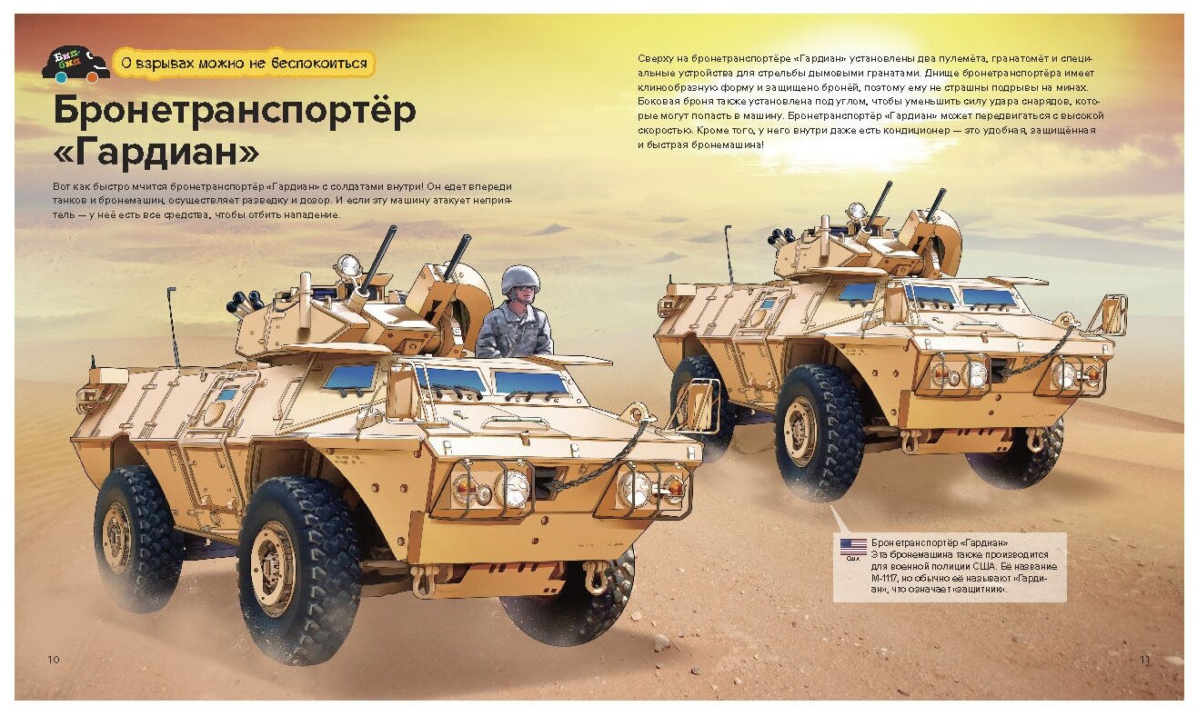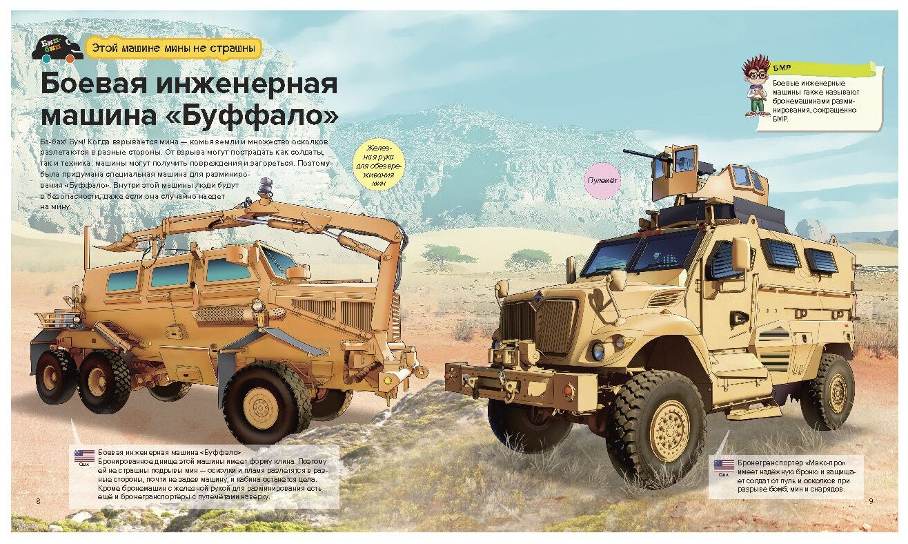 .Книга «Военная техника» расскажет о необычных военных механизмах прошлого, о практичных армейских изобретениях современности и об артиллерийских машинах, боевые возможности которых поражают воображение.