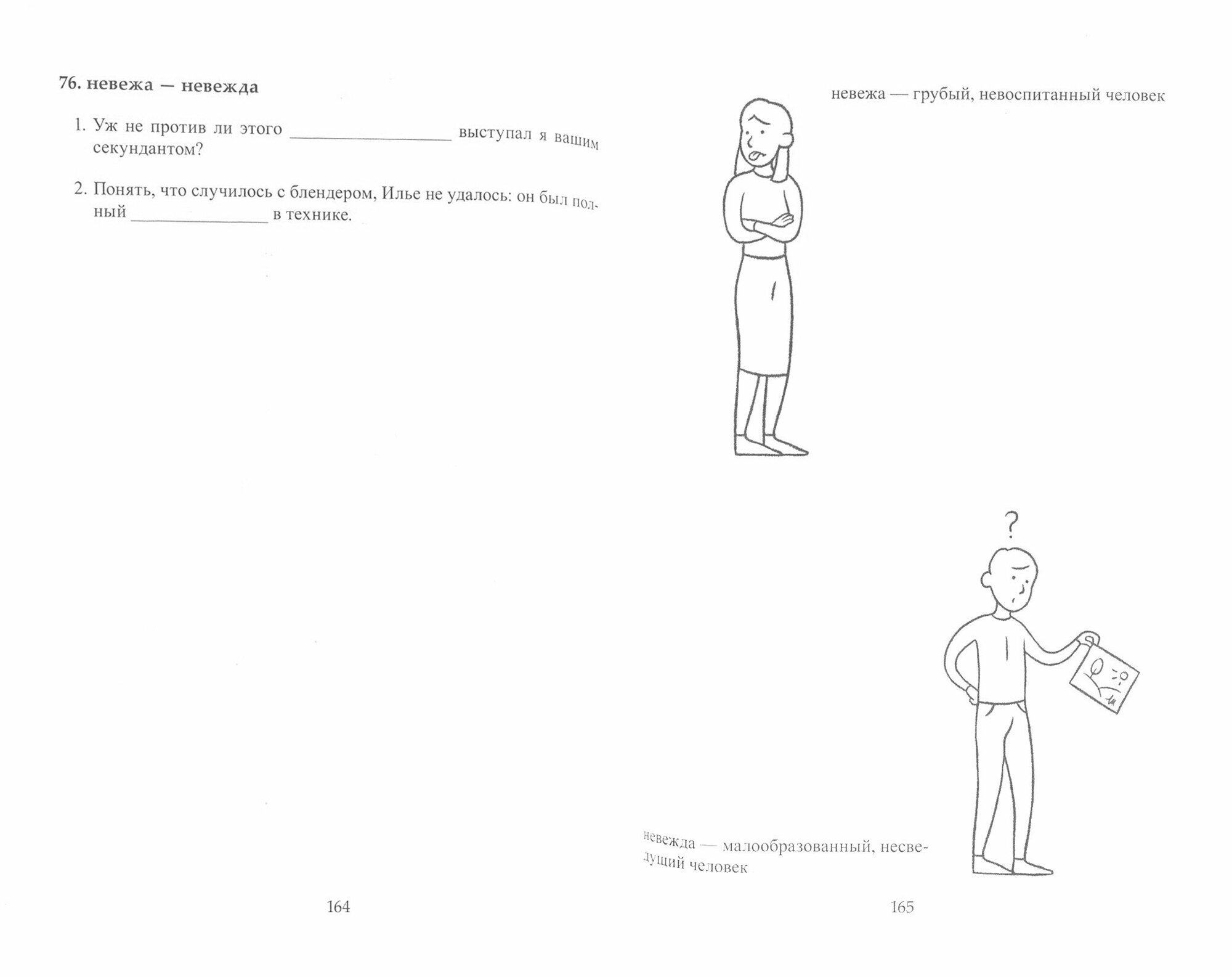 Из минусов: не объясняется различие в употреблении таких сложных пар, как, например, "ироничный - иронический", "романтичный - романтический". На мой взгляд, толкования слишком схожи, нужны пояснения, когда именно используется каждое из слов, совпадают ли они в каком-то значении. Есть ошибки в ответах, к примеру, на паронимы "производственный - производительный": "Производительные траты планируются обычно, поэтому всегда включены в бизнес-план" (так согласно ответам). Забавные картинки-наброски, но не всегда по ним можно понять, чем различаются похожие слова.