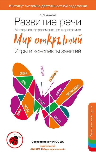 Издание выходит в комплекте с рабочей тетрадью по развитию речи для детей подготовительной группы детского сада (6-7 лет). Данный комплект реализует комплексную образовательную программу дошкольного образования "Мир открытий" (под ред. Петерсон Л.Г., Лыковой И.А.) в образовательной области по речевому развитию. Издание адресовано методистам и педагогам детского сада для проведения систематических развивающих занятий. Программа и методика занятий по развитию речи детей дошкольного возраста О.С. Ушаковой апробировались в течение десятилетий на экспериментальных площадках во многих регионах России. Для программы "Мир открытий" содержание методики существенно обновлено, учитывает современные реалии развития языка и социальные изменения. Преимуществом издания являются: наличие программно-методических основ; календарно-тематическое планирование занятий; четкая постановка целей каждого занятия; подробные конспекты (36 занятий). Занятия нацелены на комплексное речевое развитие ребенка.
