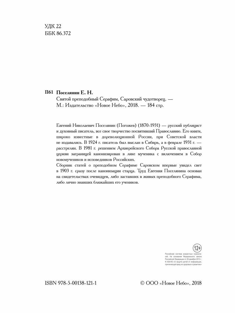 Святой преподобный Серафим Саровский чудотворец (Евгений Николаевич Поселянин); Омофор, 2018