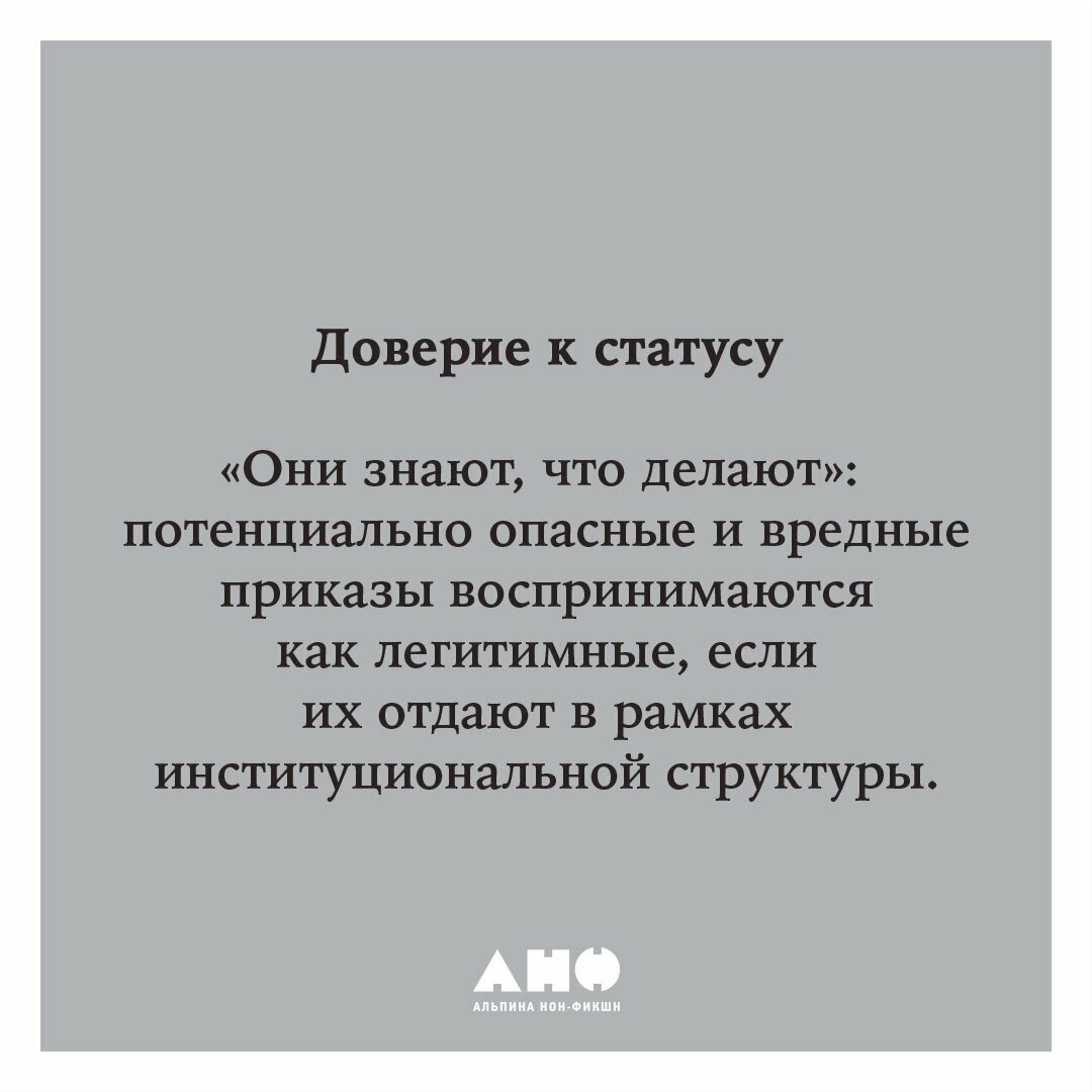 На что способен пойти добропорядочный гражданин, повинуясь приказу? Размышления о десятках тысяч людей в фашистской Германии, отправлявших на смерть себе подобных, просто выполняя свой долг, натолкнули Стэнли Милгрэма на мысль о провокационном эксперименте. Поведение испытуемых в ходе разных вариаций эксперимента неизменно подтверждало страшные догадки Милгрэма: одни участники испытаний сурово «наказывали» других, не пользуясь своим правом отказаться. Парадокс заключается в том, что такие добродетели, как верность, дисциплина и самопожертвование, которые мы так ценим в человеке, привязывают людей к самым бесчеловечным системам власти. Но со времен нацистских лагерей смерти природа человека не изменилась. Вот почему актуальность концепции, которую со страшной убедительностью подтверждает эксперимент, можно оспаривать, но опасно недооценивать. Знаменитый эксперимент Милгрэма, поначалу вызвавший у многих протест и недоверие, позже был признан одним из самых нравственно значимых исследований в психологии.