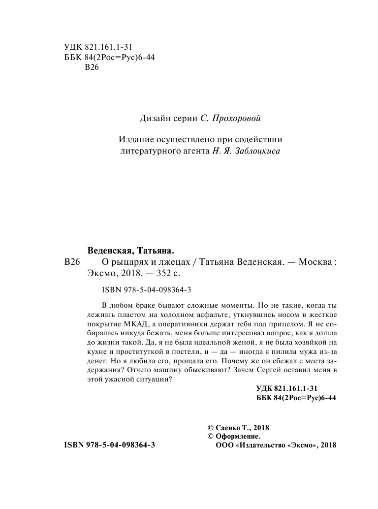 Книга: О рыцарях и лжецах (Веденская Татьяна Евгеньевна); Эксмо, 2018