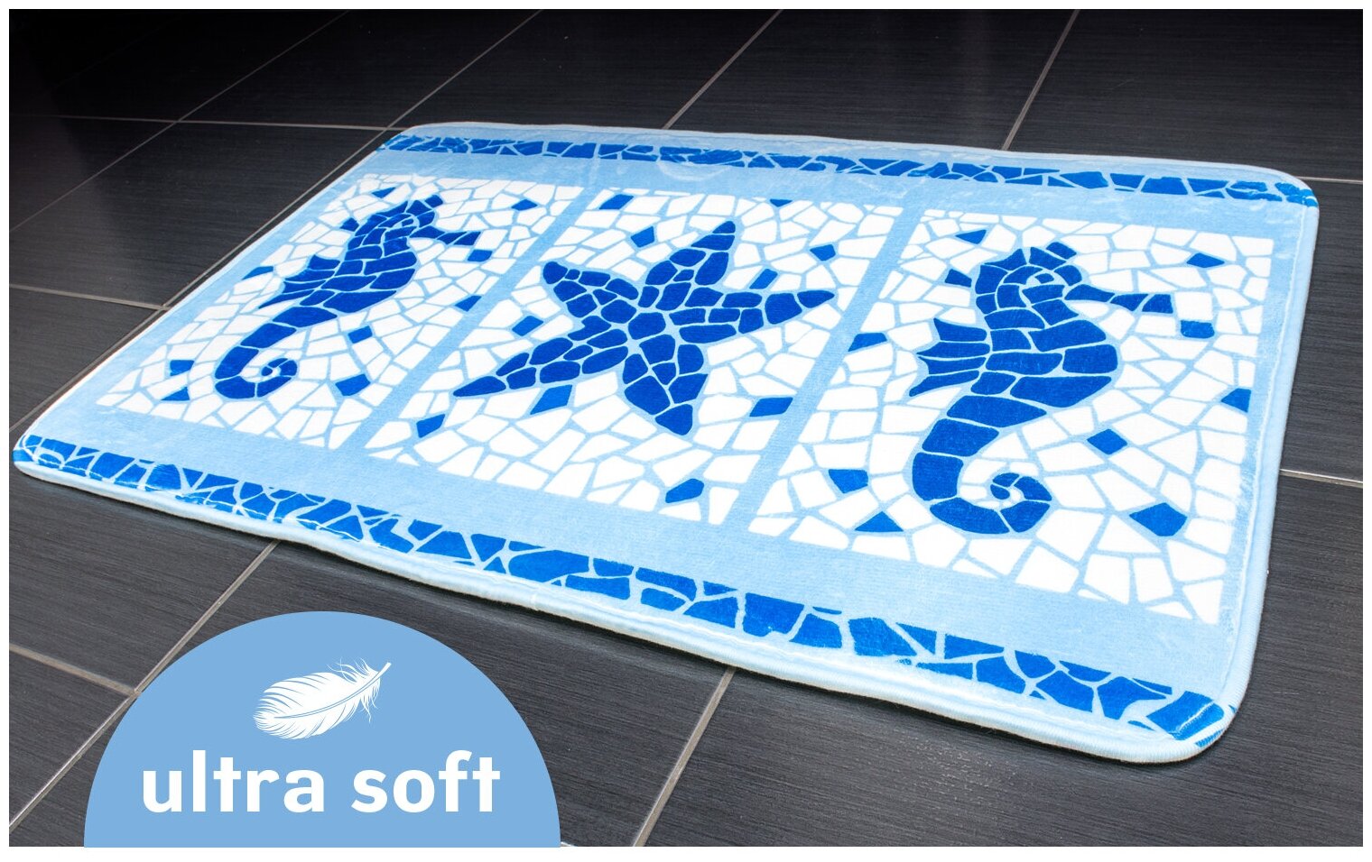 Коврик для ванной комнаты Tatkraft изготовлен из микрофибры Ultra Soft - мягкого, приятного на ощупь материала. Коврик отлично поглощает и впитывает влагу. Основание противоскользящее. Яркий красочный рисунок, выполненный в морском стиле под мозаику, внесет оригинальную нотку в интерьер ванной комнаты. Коврики Tatkraft - прекрасное решение для ванной комнаты.