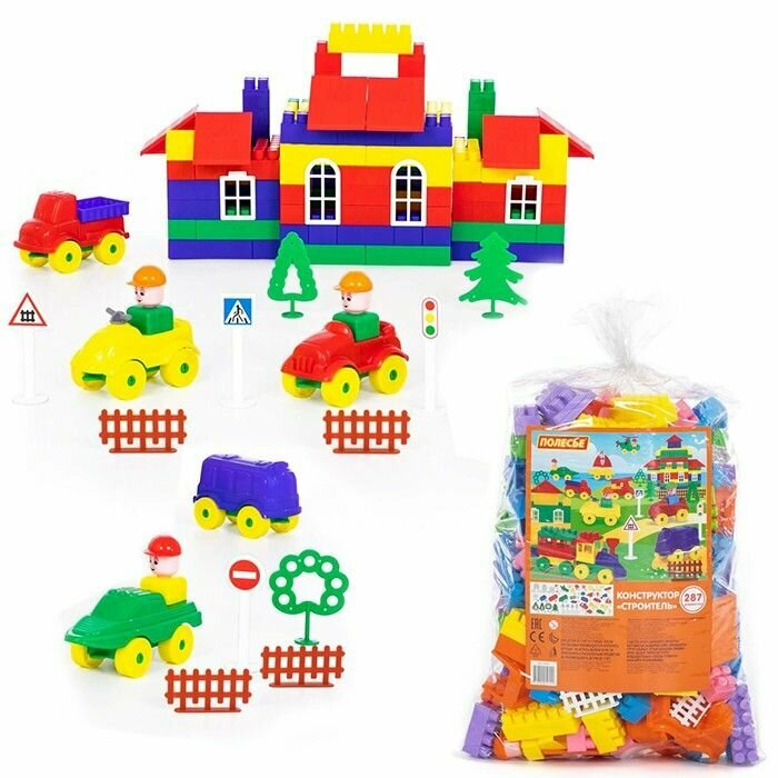 Конструктор Полесье Строитель 287 дет. (пакет) (52551)