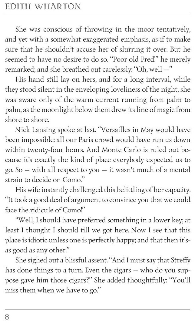Edith Wharton (1862—1937) was an American novelist and short story writer. Her works show the lives of people of the late nineteenth century, the times of decline in American history. She was the first woman to receive the Pulitzer Prize for Literature in 1921. Wharton also was familiar with many famous people of the time, including President Theodore Roosevelt. "The Glimpses of the Moon" tells the story of two young and poor New Yorkers, Nick Lansing, and Susy Branch, who are in love and want to marry but can't decide to do this without the wealth. They both agree to separate when even one of them finds a wealthy partner. However, as they honeymoon with wealthy friends goes on, jealousy and conscience make the idyll crumble.