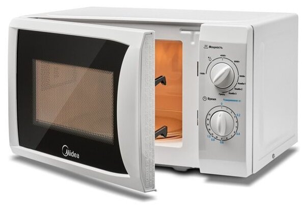 Микроволновая печь Midea выполнена в классическом белом цвете, такой дизайн гармонично вписывается в интерьер любой кухни. Поверхность корпуса и внутреннее покрытие камеры легко очищаются от загрязнений.